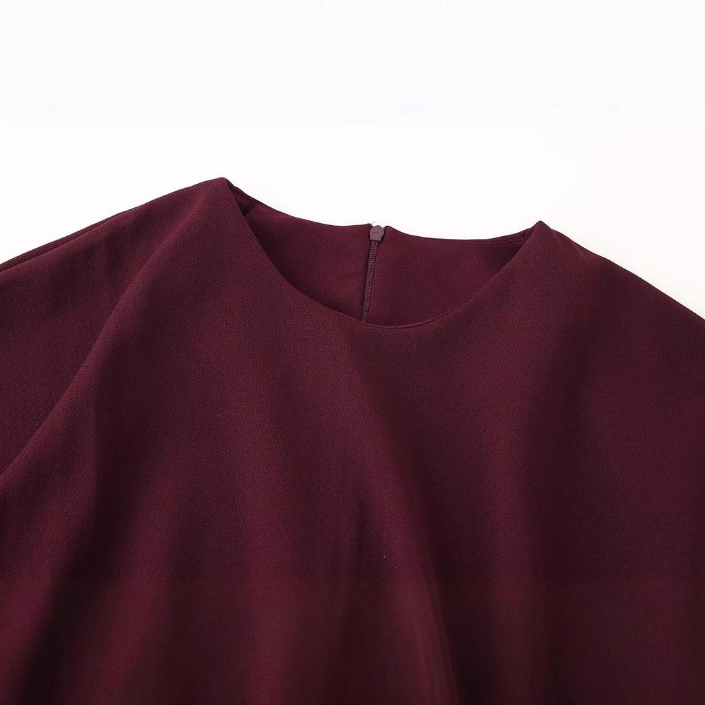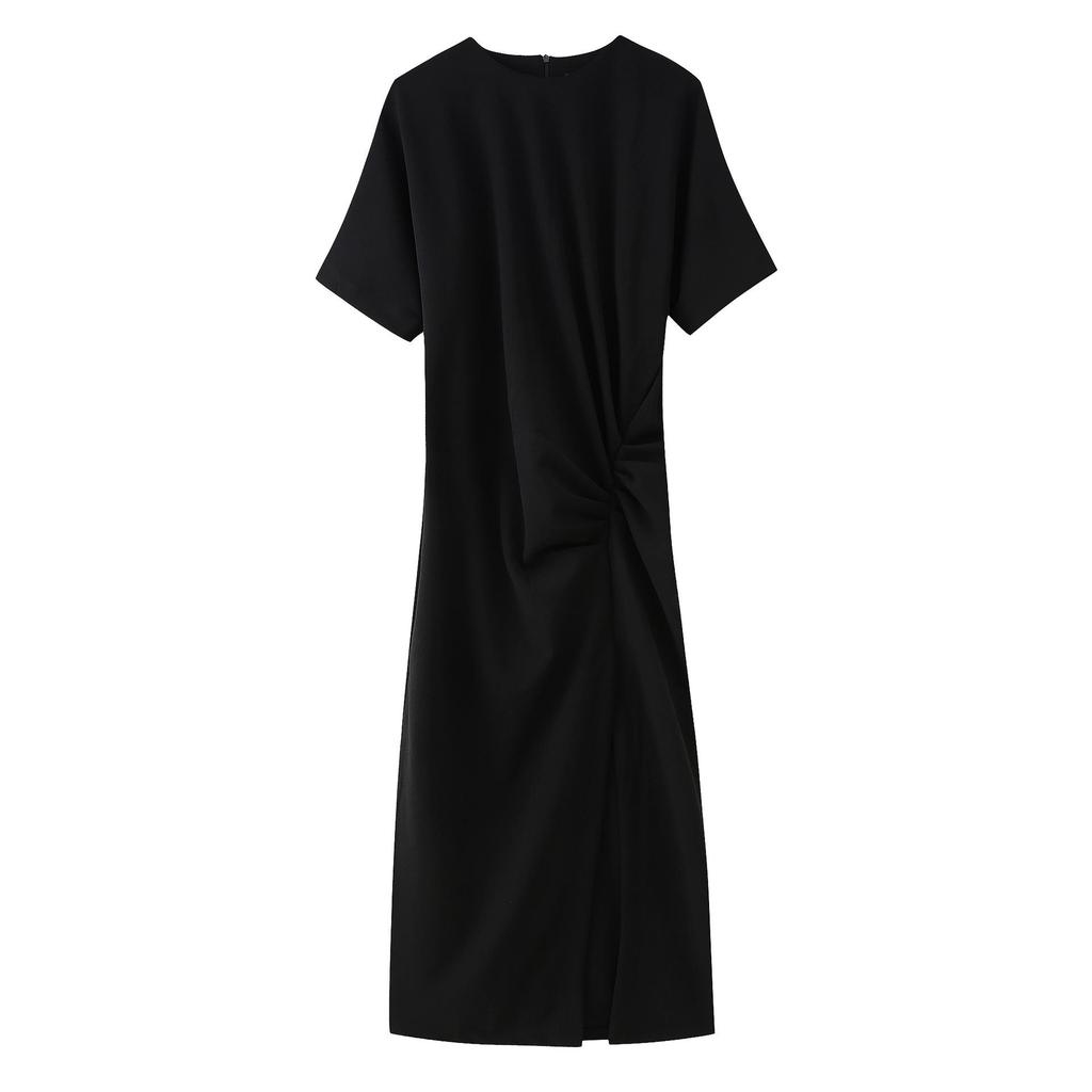 Весна 2025 Женское плиссированное миди-платье в европейском и американском стиле - Короткий рукав, Круглый вырез