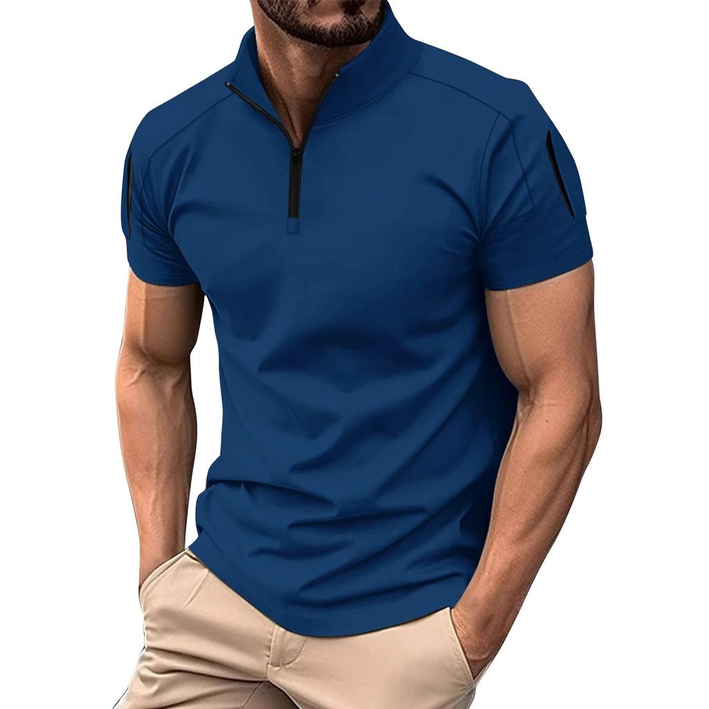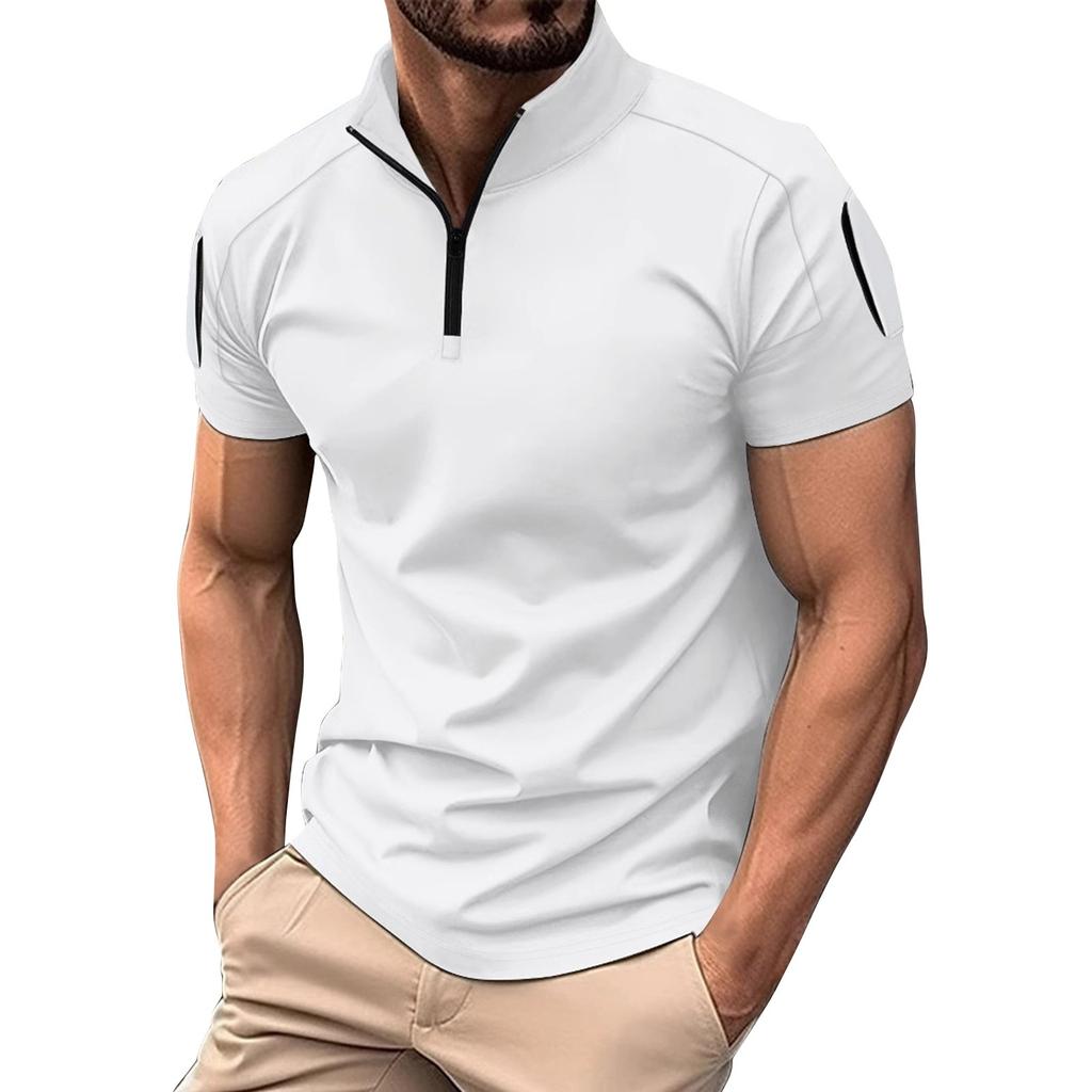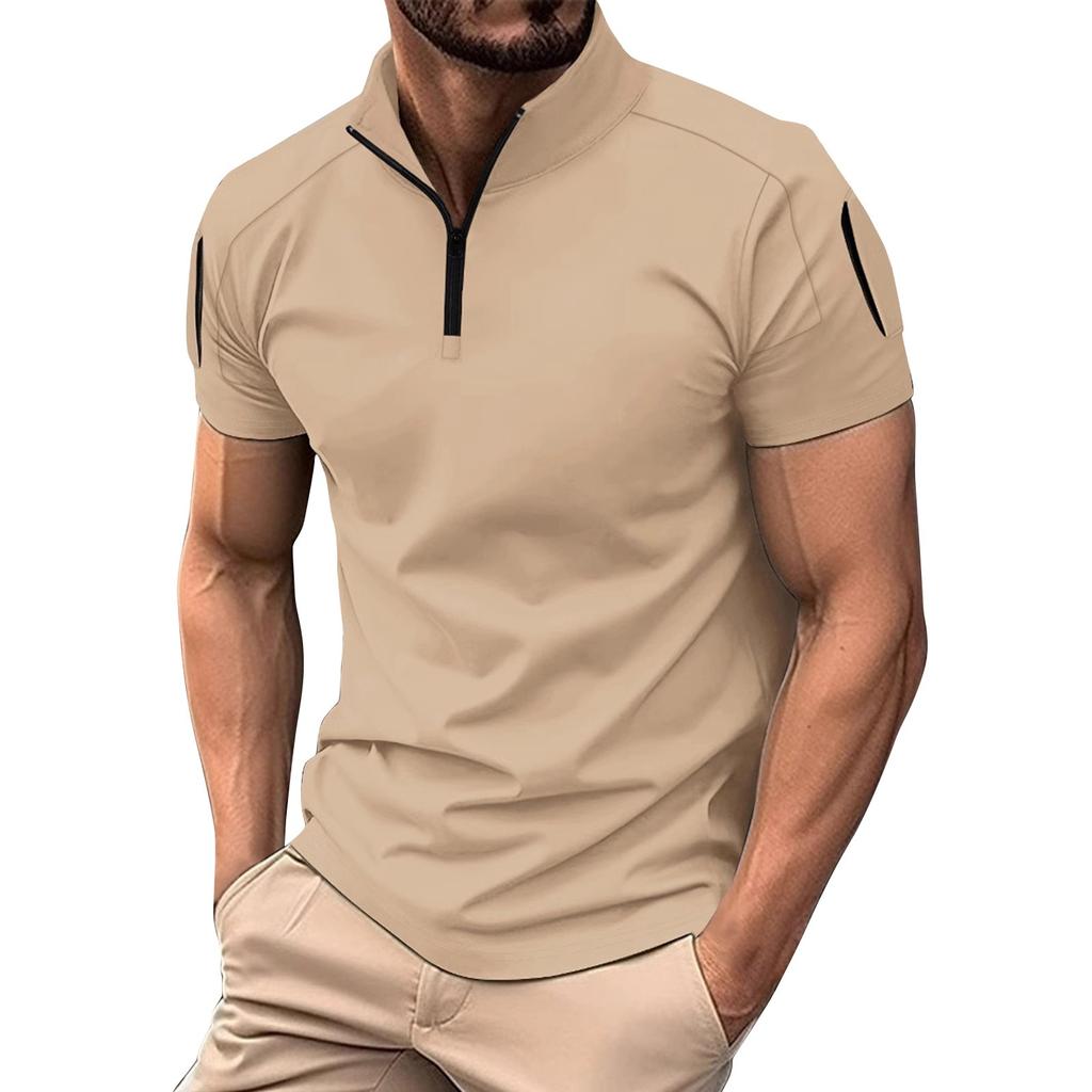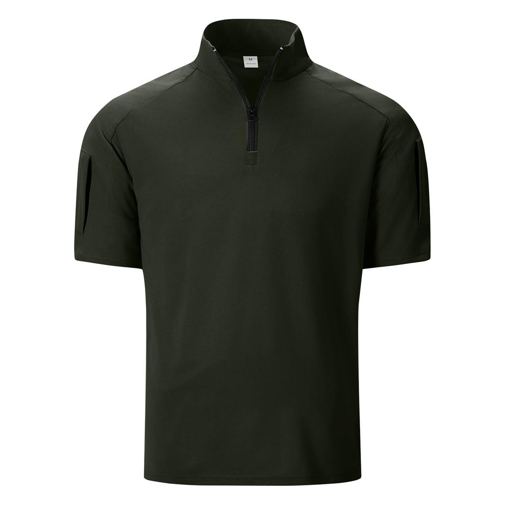 Мужская однотонная рубашка с коротким рукавом и карманом на молнии на рукаве, воротником-стойкой, повседневная модная рубашка для мужчин