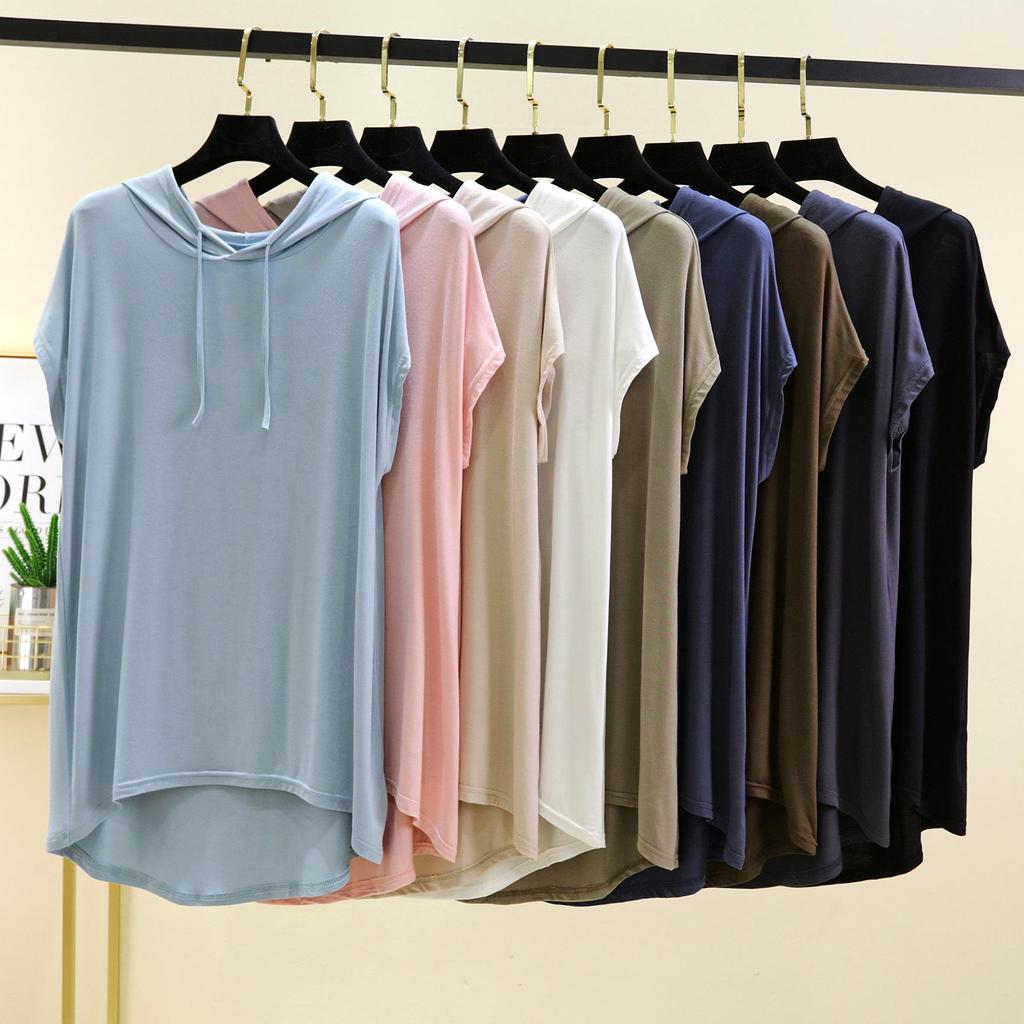 Женская футболка с капюшоном из модала с коротким рукавом для защиты от солнца - Весна/Лето, Большой размер, Слим-фит, Повседневный свободный крой — купить товар онлайн с бесплатной доставкой до всему миру!