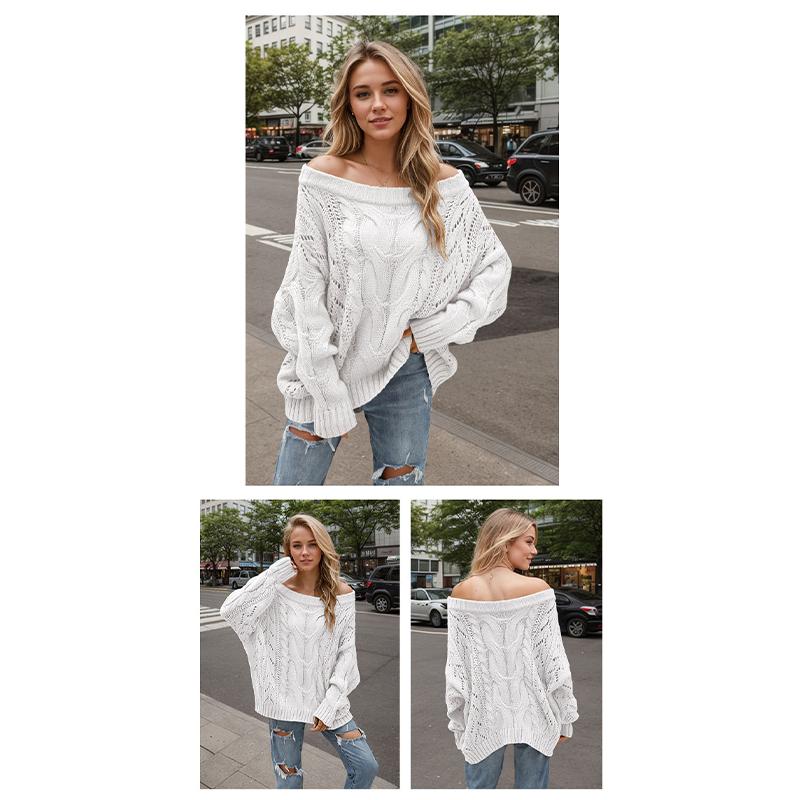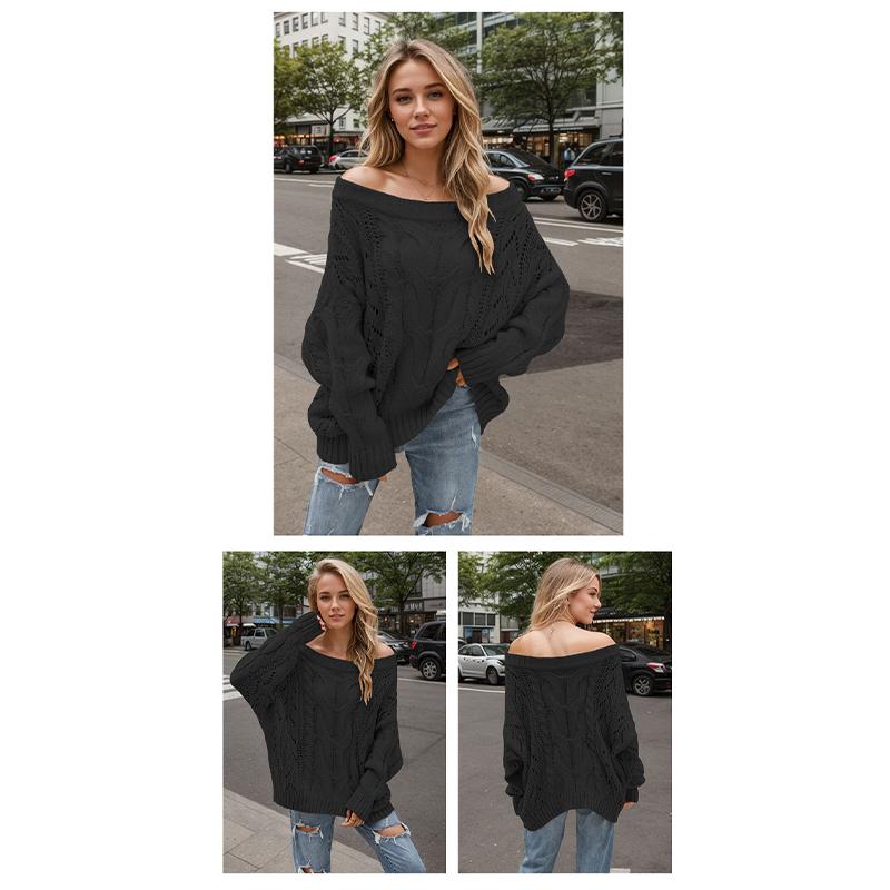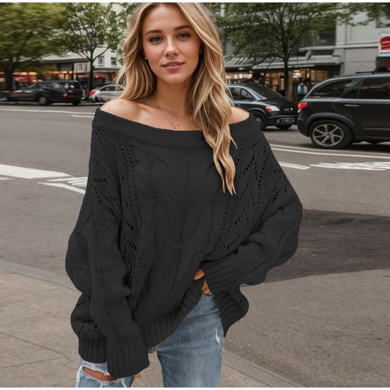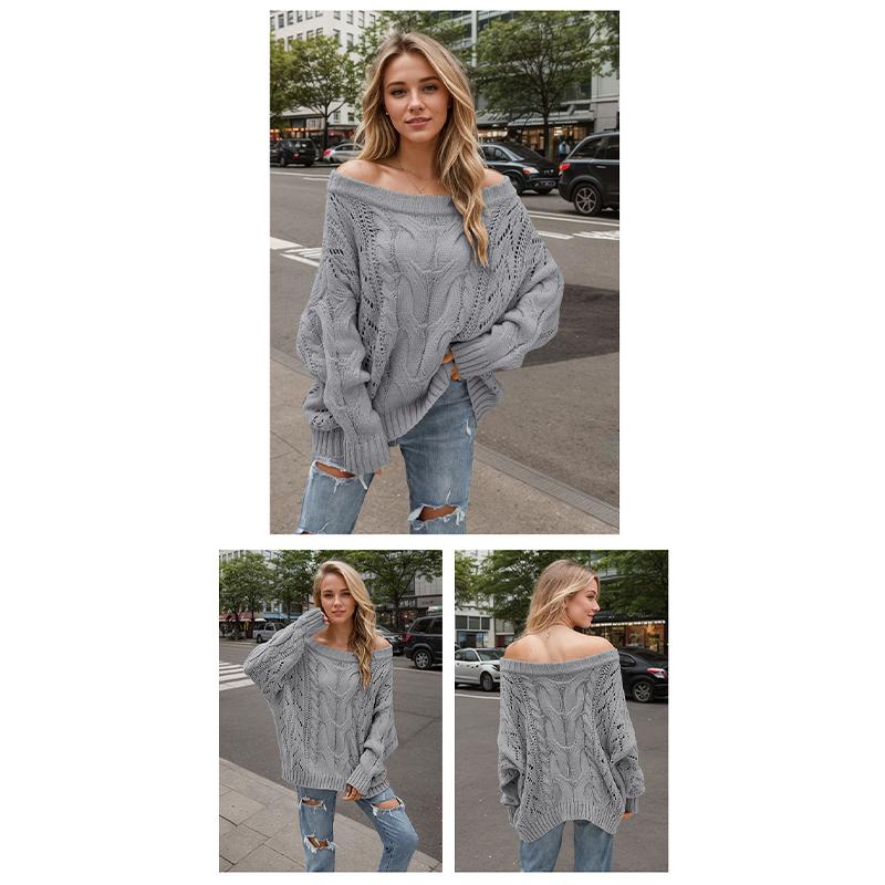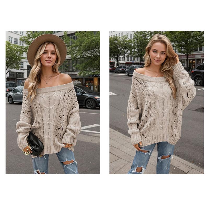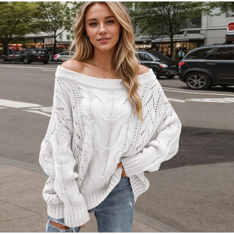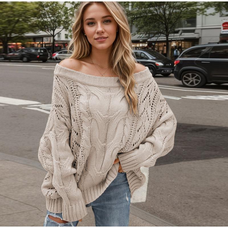 Женский свитер с открытыми плечами, трикотаж, выдолбленный, с переплетением, женский свободный винтажный пуловер
