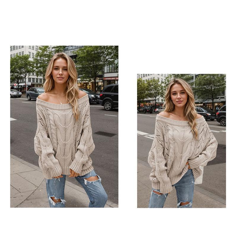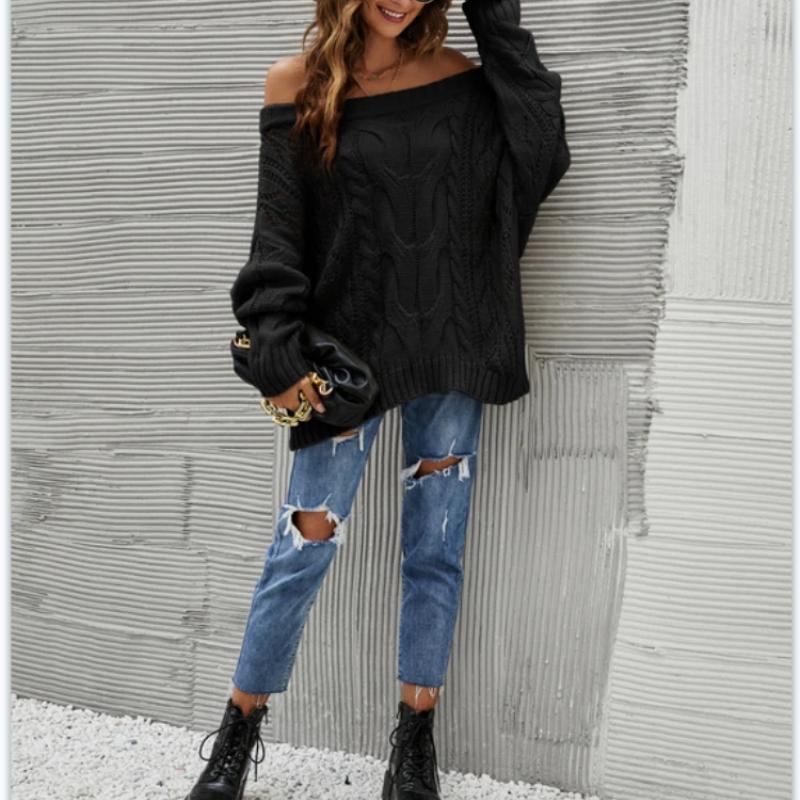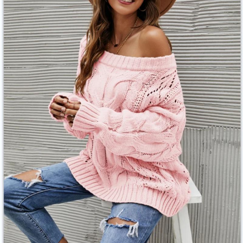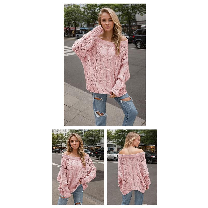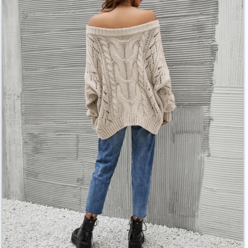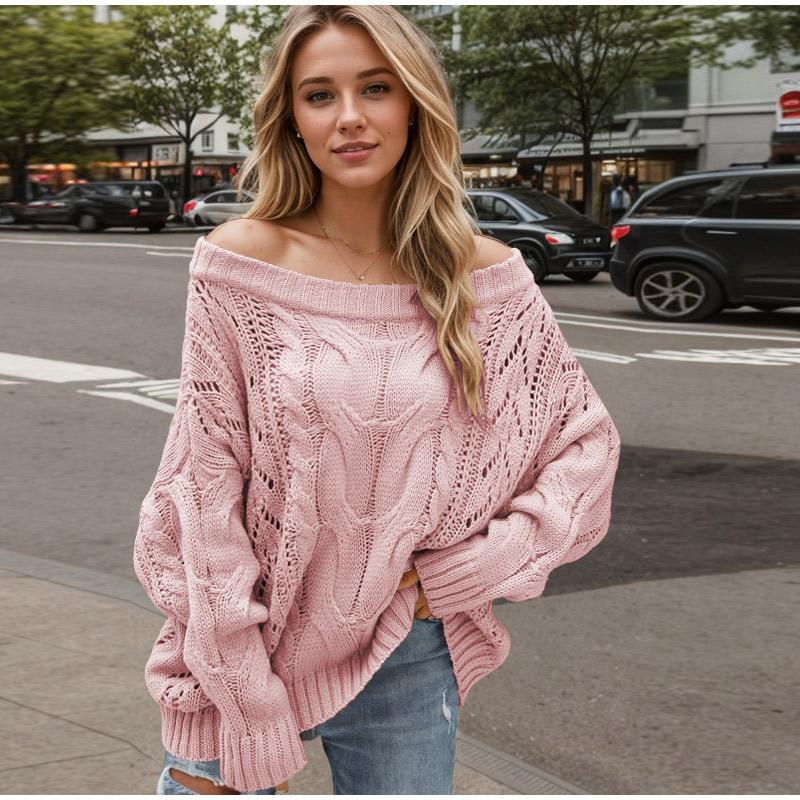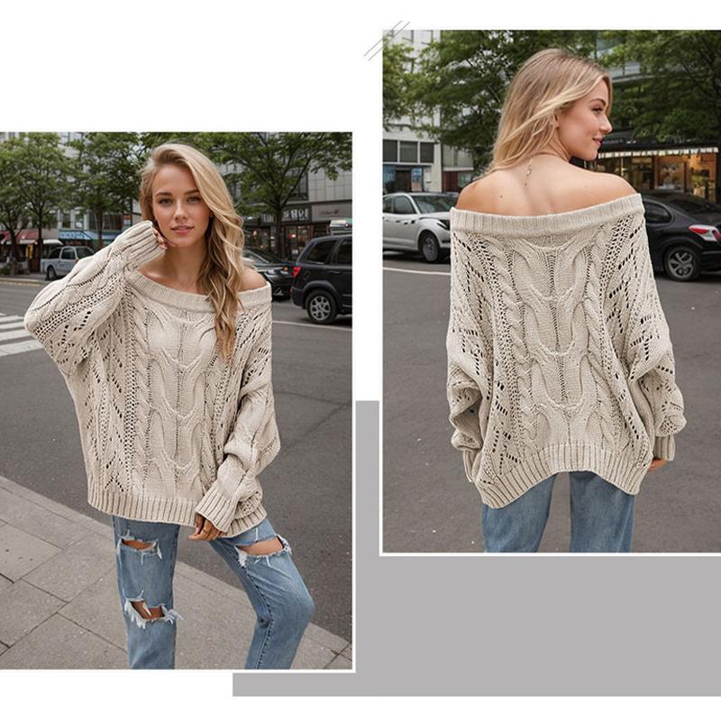 Женский свитер с открытыми плечами, трикотаж, выдолбленный, с переплетением, женский свободный винтажный пуловер