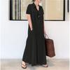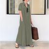 Женское повседневное хлопково-льняное однотонное свободное темпераментное короткое платье-рубашка