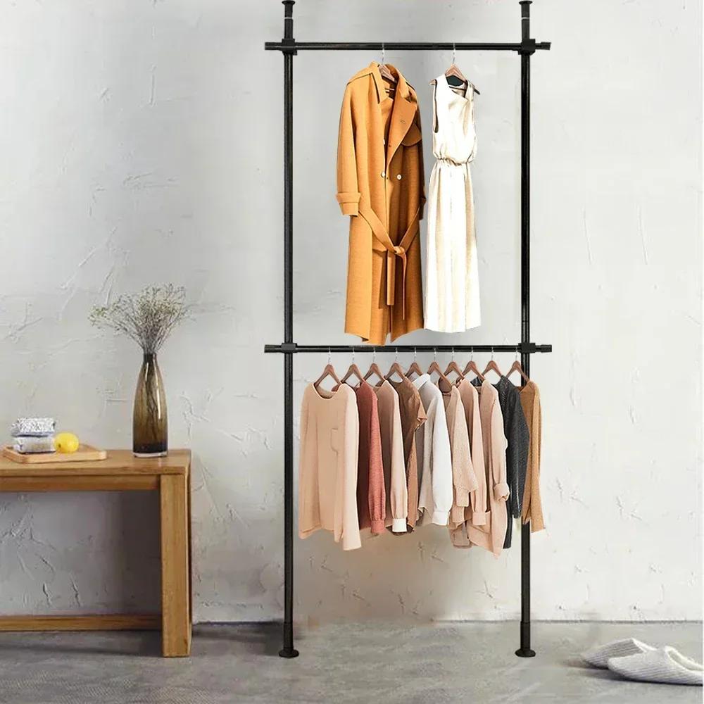 2-х уровневая штанга для одежды, регулируемая коммерческий органайзер для одежды, напольный шкаф, вешалка для хранения одежды