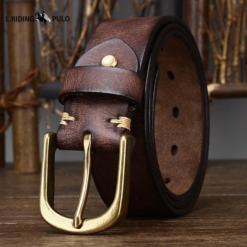 Мужской ремень с медной пряжкой, из натуральной кожи, с пряжкой-булавкой, из чистой коровьей кожи, в стиле ретро, универсальный, в корейском стиле, повседневный ремень