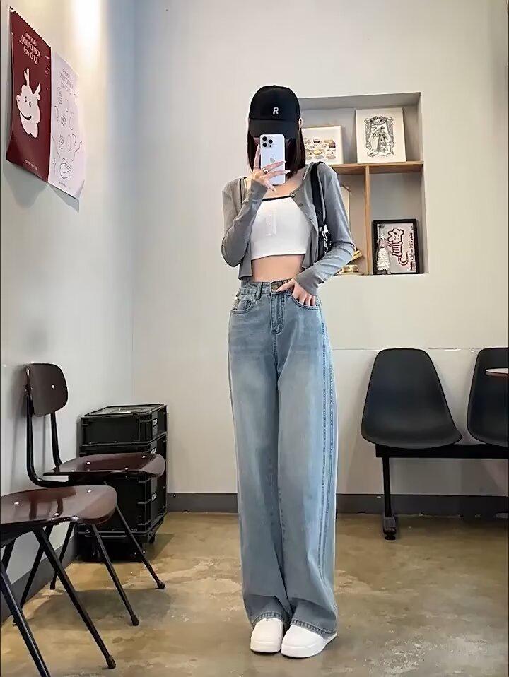Эти джинсы с высокой посадкой и широкими штанинами светло-голубого цвета придадут стильный и современный вид любому гардеробу.. Джинсы, изготовленные из премиального денима, имеют высокую посадку, которая подчеркивает ваш силуэт и обеспечивает удобную посадку.. Спортивный стиль дополнен практичными карманами, сочетая в себе моду и функциональность.. Эти джинсы прямого кроя длиной до пола станут универсальным дополнением к вашей коллекции, идеально подходящим для любого повседневного или непринужденного выхода.