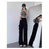 Женские маленькие черные быстросохнущие брюки прямого кроя с широкими штанинами, повседневные летние спортивные брюки 2024