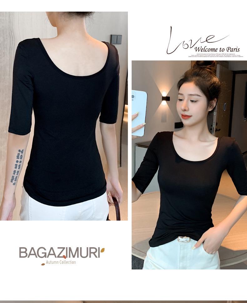 Женская черная приталенная футболка из модала с полурукавом и круглым вырезом