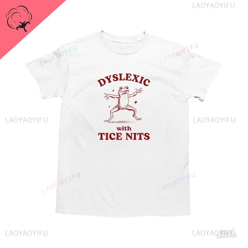 Дислексик с гнидами Tice Смешная футболка с лягушкой-дислексией Тупая футболка Y2k Глупый винтажный футболка Саркастическая футболка с рисунком Глупые мемы Топы из хлопка