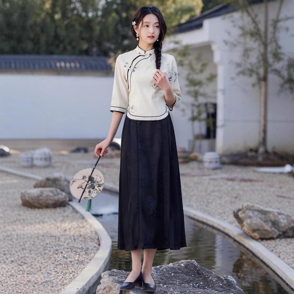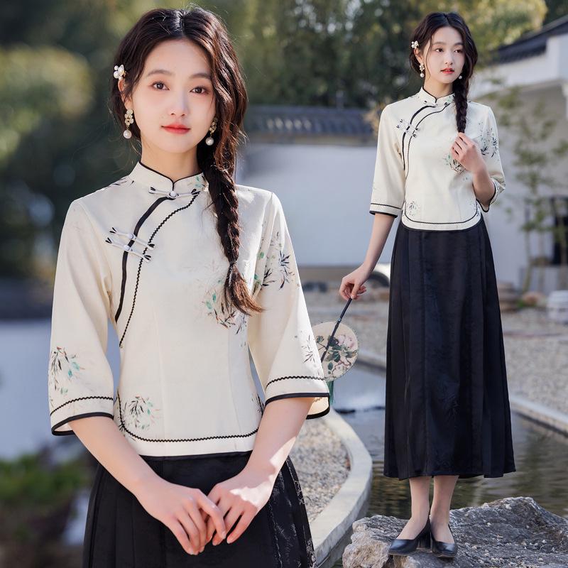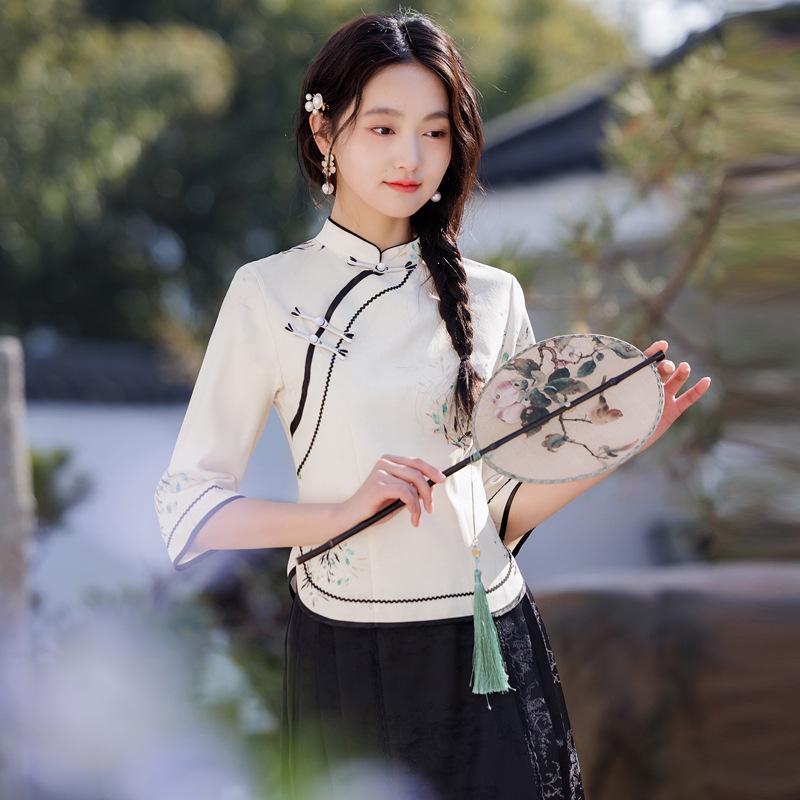 Исследуйте сочетание традиций и современного стиля с этим женским приталенным чайным костюмом в стиле ханьфу.. Этот элегантный наряд, изготовленный из дышащей смеси хлопка и льна, обеспечивает комфорт и долговечность.. Комплект украшен изысканными расписанными вручную принтами, которые придают его дизайну уникальный штрих.. Застежка на пуговицу-лягушку добавляет традиционный элемент, что делает ее идеальным выбором для тех, кто ценит культурную моду с современным акцентом.. Будь то для особых случаев или изысканного повседневного образа, этот чайный сервиз воплощает элегантность и изысканность.