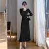 Корейское шерстяное вязаное платье «рыбий хвост» - Женское осенне-зимнее длинное выше колена облегающее базовое платье