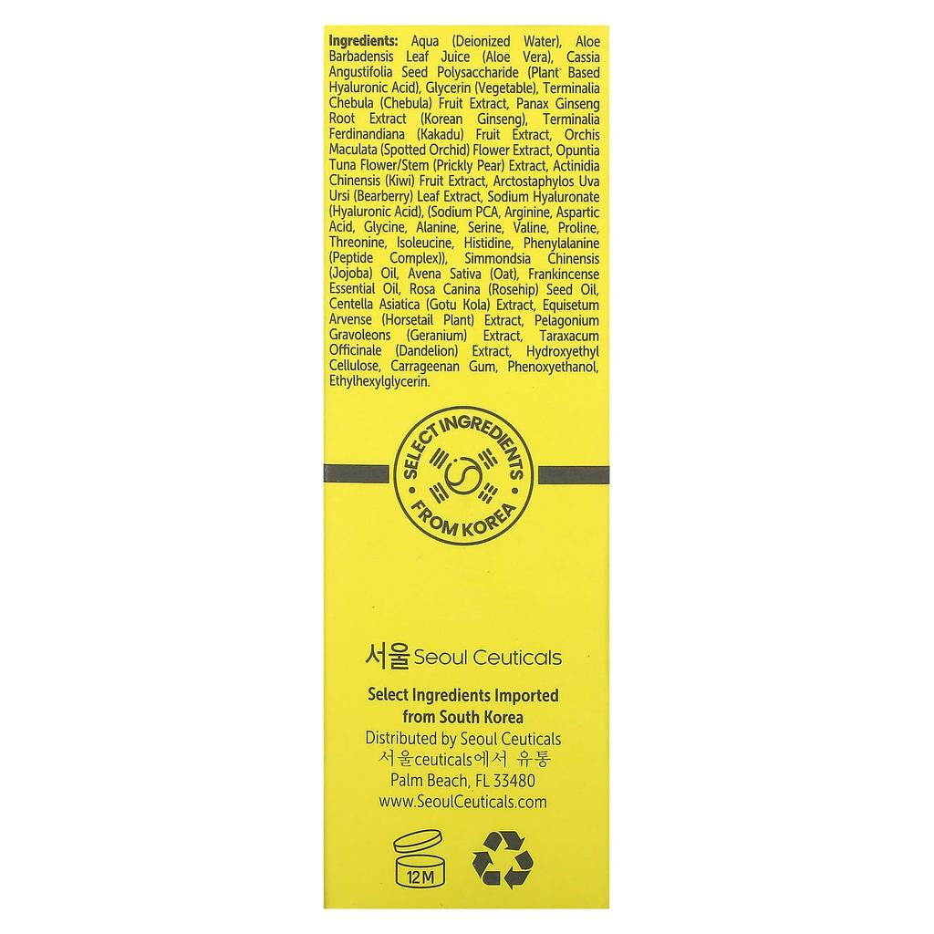 deionized water, aloe barbadensis leaf juice, senna (cassia angustifolia) seed polysaccharide (vegetable hyaluronic acid), glycerin (vegetable), chebula (terminalia chebula) fruit extract, korean ginseng (panax ginseng) root extract, kakadu (terminalia ferdinandiana) fruit extract, spotted orchid (orchis maculata) flower extract, tuna flower/stem (opuntia tuna) extract, kiwi (actinidia chinensis) fruit extract, uva ursi (arctostaphylos uva ursi) leaf extract, sodium hyaluronate (hyaluronic acid), (sodium pca, arginine, aspartic acid, glycine, alanine, serine, valine, proline, threonine, isoleucine, histidine, phenylalanine (peptide complex)), jojoba (simmondsia chinensis) oil, oat (avena sativa) essential oil, rosehip (rosa canina) seed oil, centella asiatica (centella asiatica) extract, equisetum arvense (equisetum arvense) extract, geranium (pelargonium graveolens) extract, taraxacum officinale (dandelion) extract, hydroxyethylcellulose, carrageenan gum, phenoxyethanol, ethylhexylglycerin.