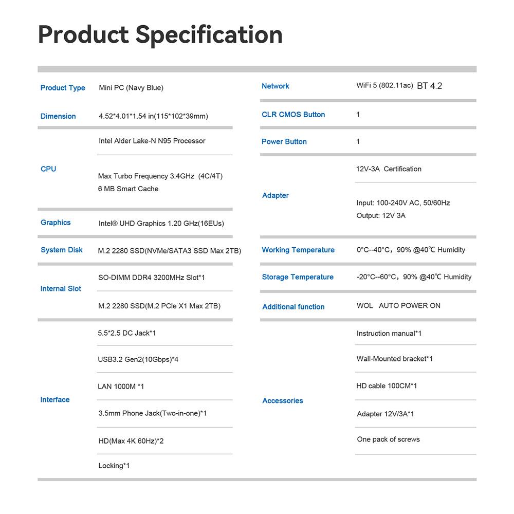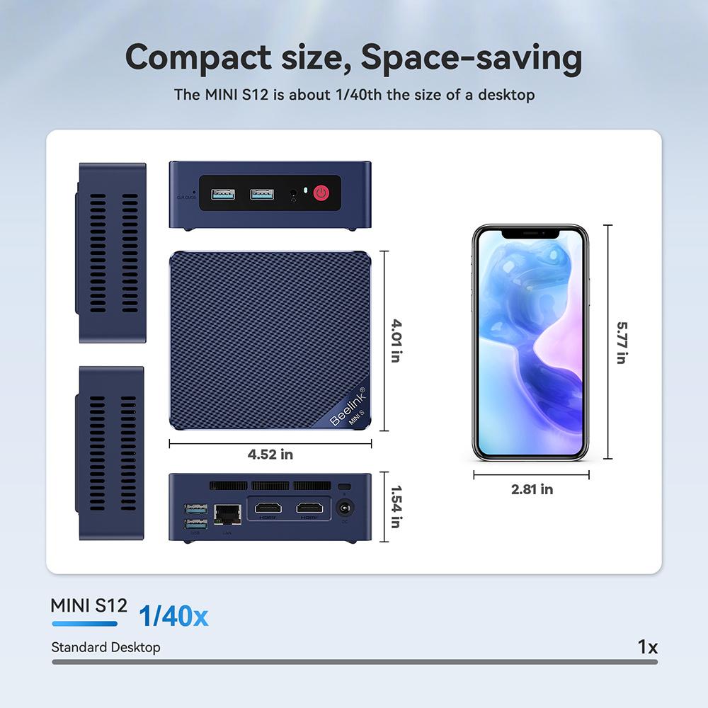 Beelink Мини-ПК Min S12 N95 Win11 Pro Поддержка Wifi5 1000M LAN Настольный мини-компьютер