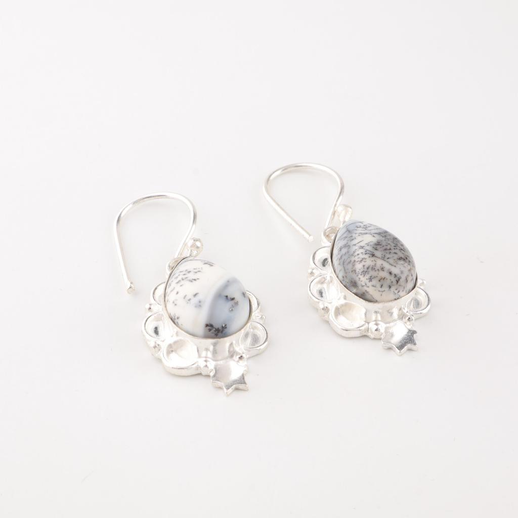 Натуральный Дендритовый Опал Драгоценный Камень 925 Проба Стерлинговое Серебро Ручная Работа Ювелирные Изделия Серьги для Девочек EE-163-30
