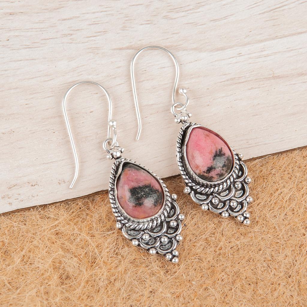 Черный родохрозит драгоценный камень 925 стерлинговое серебро ювелирные изделия серьги подарок на годовщину EE-85-27