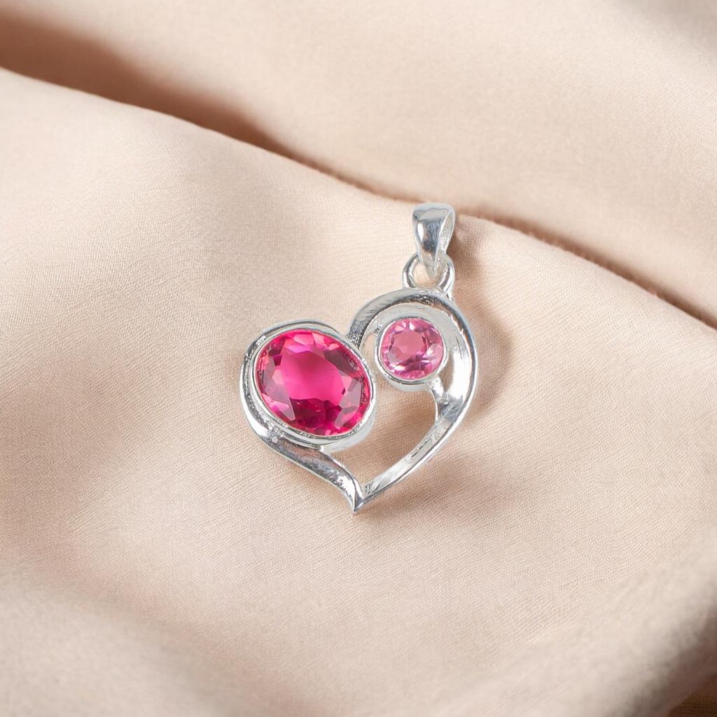 Драгоценный камень Розовый Турмалин Серебро 925 пробы Украшение ручной работы Подвеска Для любви CP-3-18