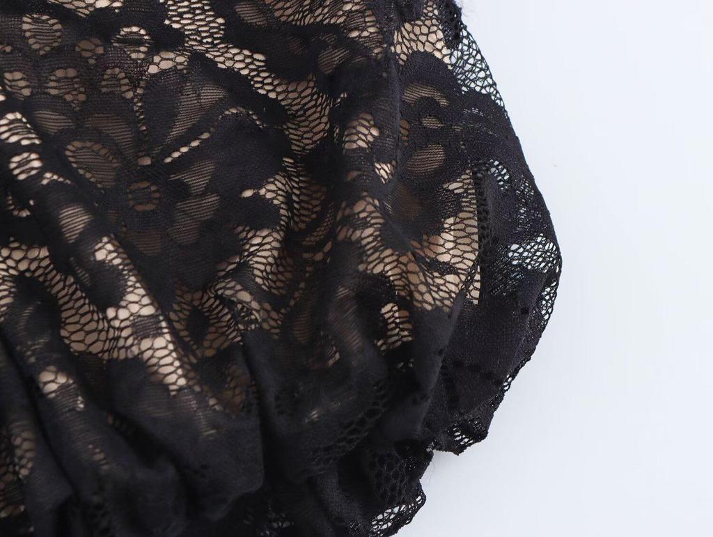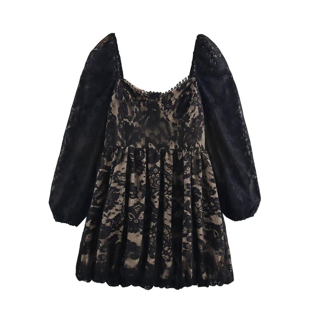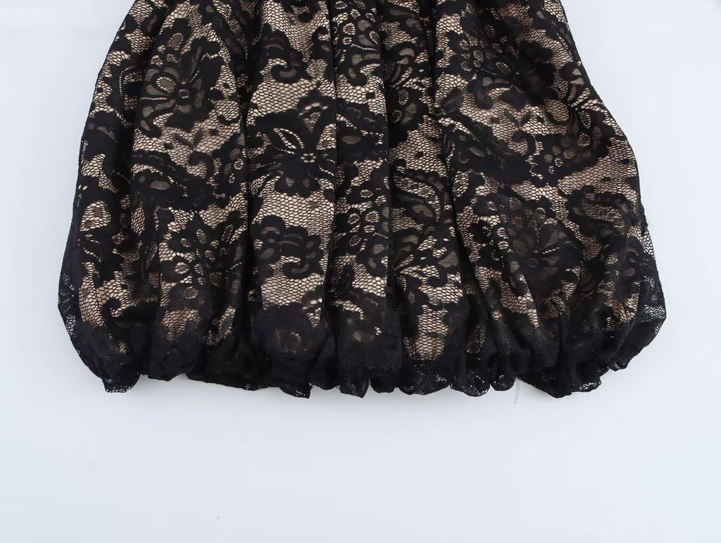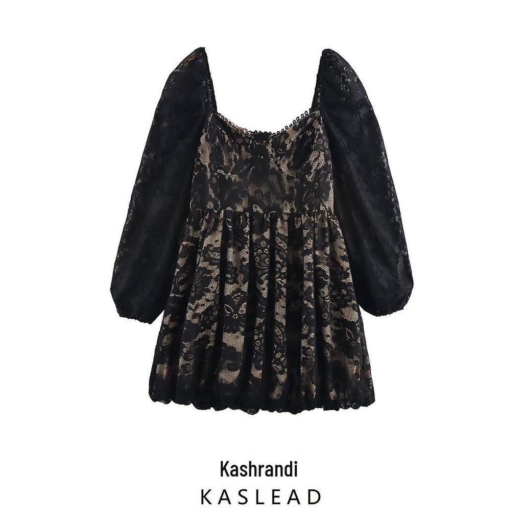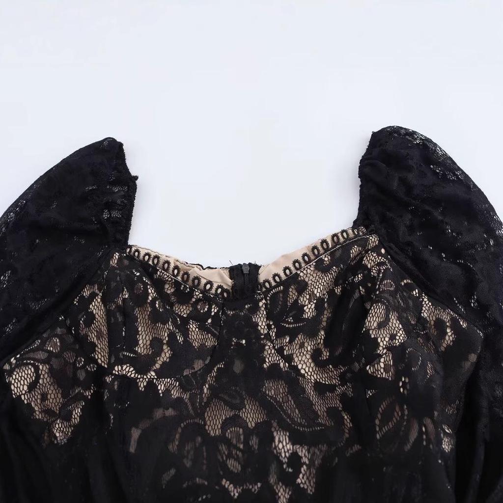 Весна 2025 Женское платье большого размера с кружевом и рукавами-буфами - Модный европейский и американский стиль