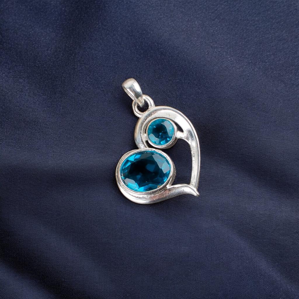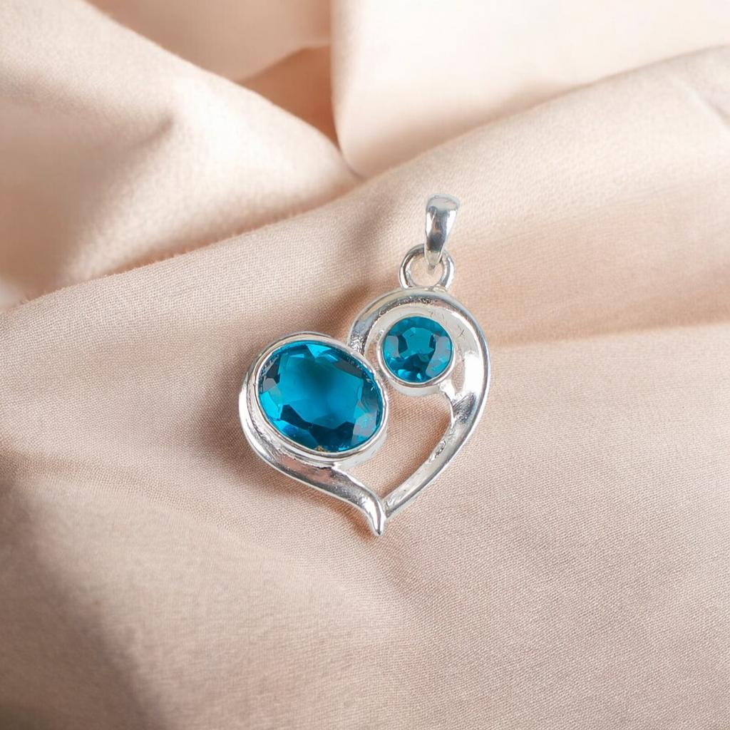 Голубой Апатит Драгоценный Камень 925 Стерлинговое Серебро Ювелирные Изделия Подвеска-Сердце Для Свадебного Подарка CP-3-11