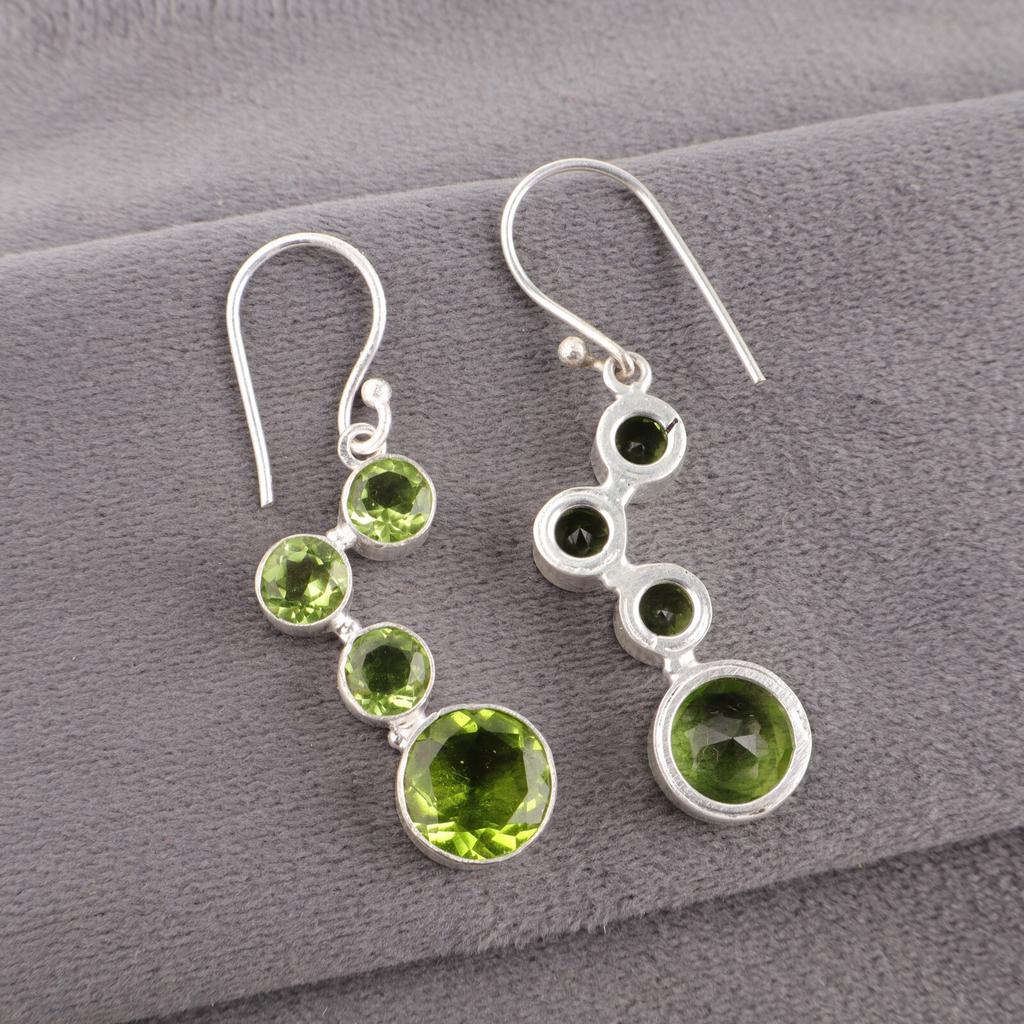 Серьги из стерлингового серебра 925 пробы с ограненным перидотом, ювелирные украшения на День благодарения EE-161-7