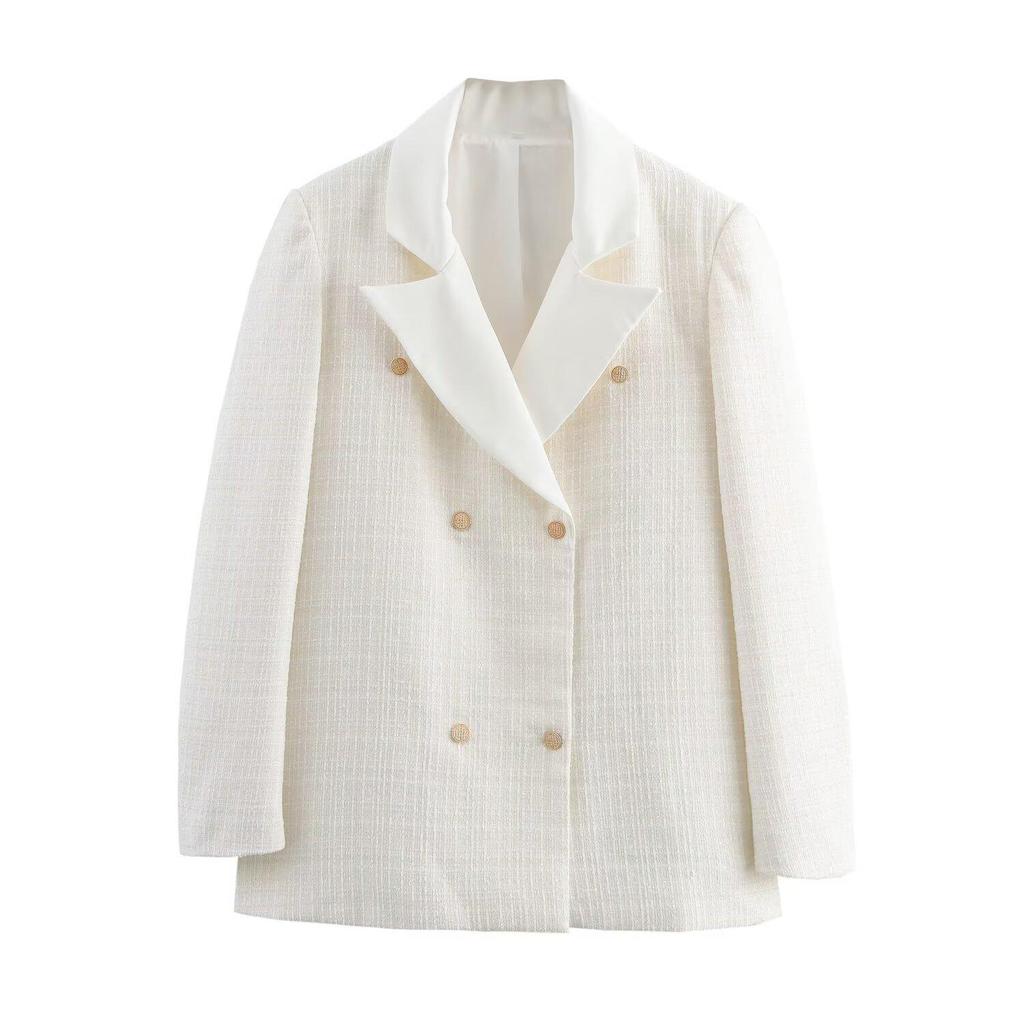 Женский двубортный шерстяной пиджак костюма весна 2025, европейский и американский стиль