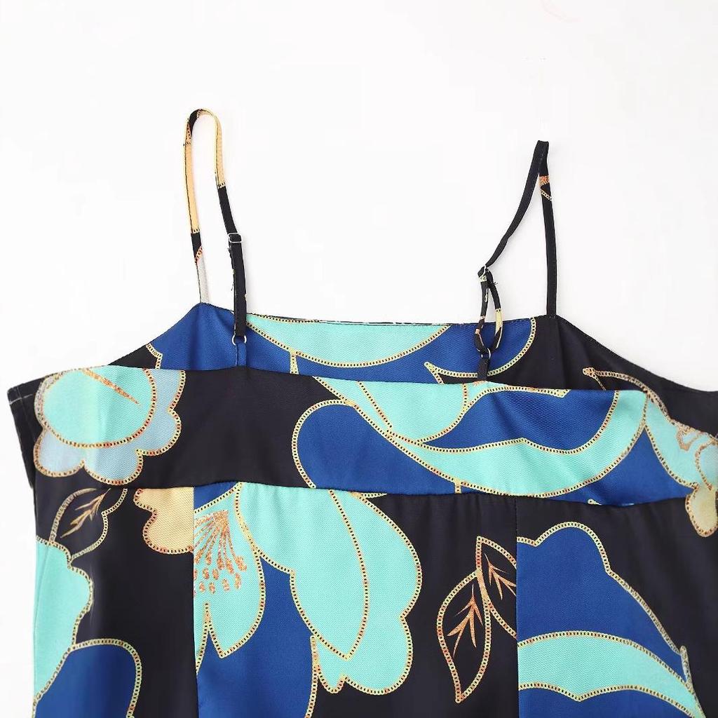 Весеннее платье 2025 года из европейского и американского шелкового атласа с принтом на тонких бретелях-спагетти