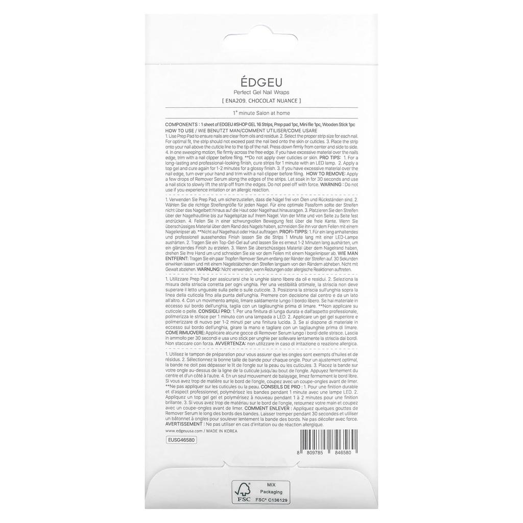 Идеальные гелевые наклейки для ногтей, Ent 209 Шоколадный нюанс, набор из 19 штук
