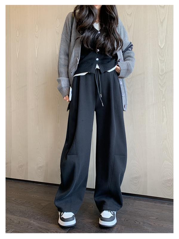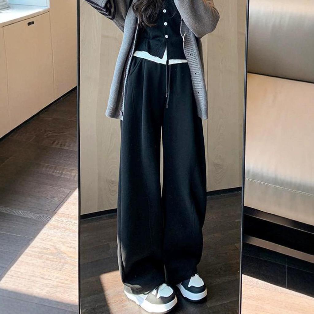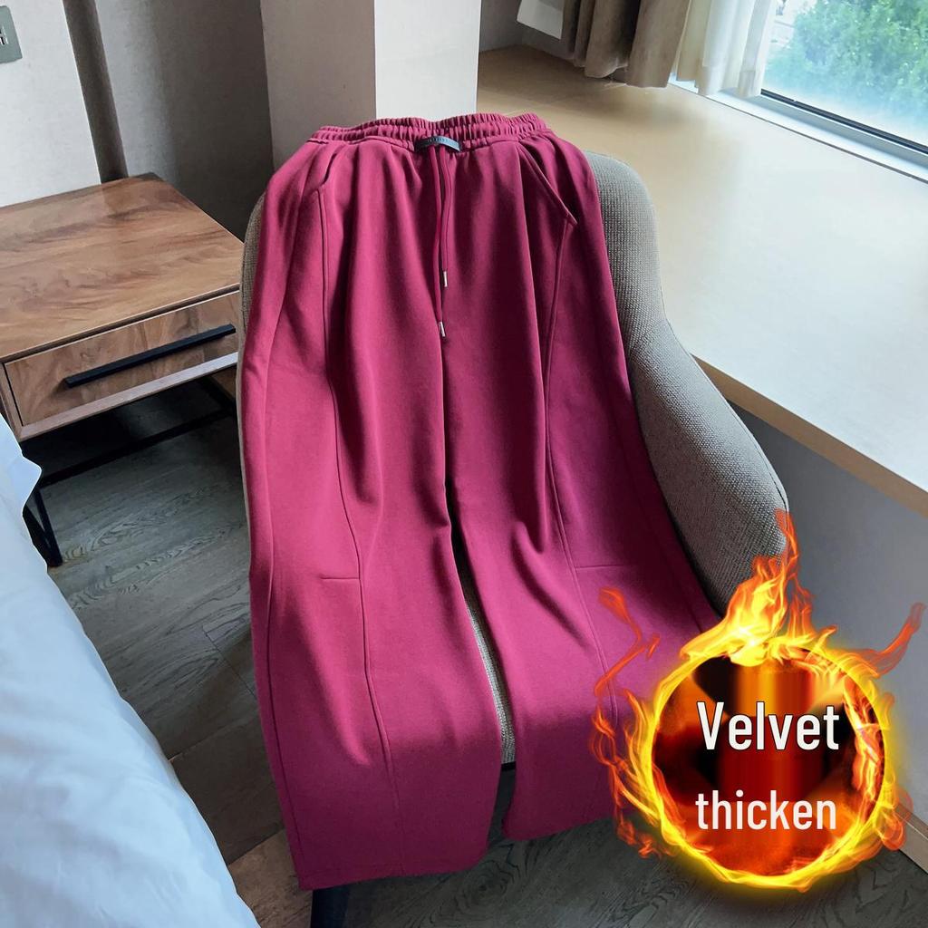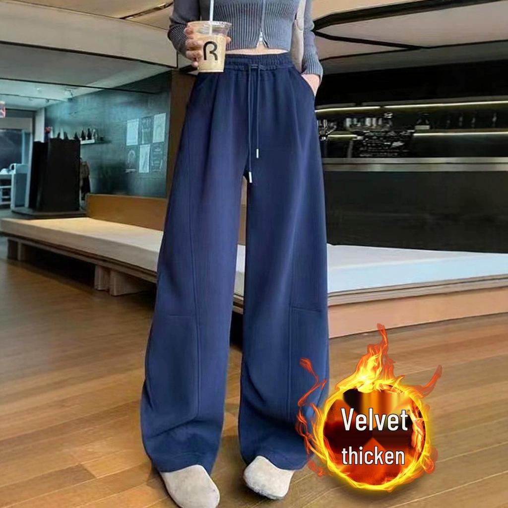 Женские спортивные брюки с широкими штанинами и высокой посадкой на флисовой подкладке: Похудение, Свободный крой, Повседневные спортивные штаны на осень/зиму.