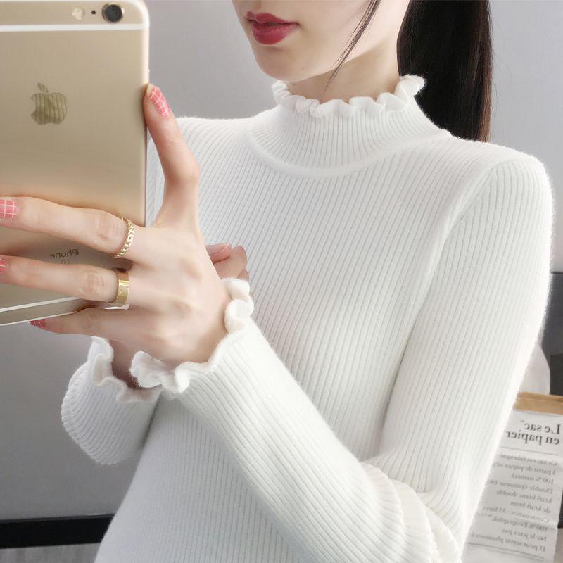 Женский модный вязаный облегающий свитер с длинным рукавом и воротником-гольф