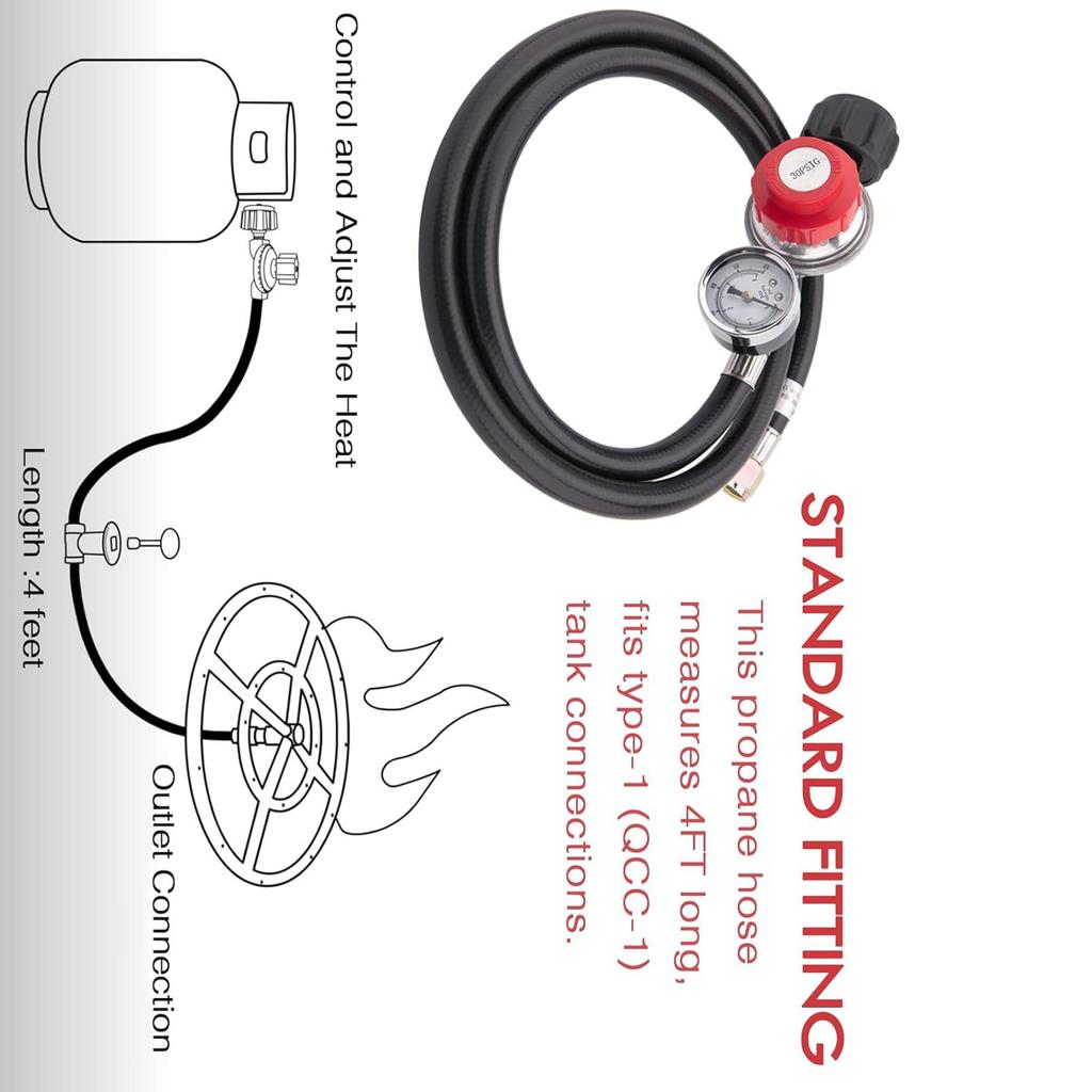 Регулируемый газовый гриль регулятор пропана со шлангом высокого давления подходит для баллона, барбекю гриля, горелок, фритюрниц, обогревателей, плиты