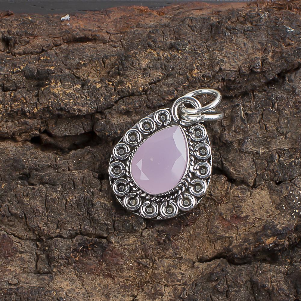 Кулон из розового халцедона, Ювелирное изделие из стерлингового серебра 925 пробы, Кулон ручной работы, Для подарка на День благодарения
