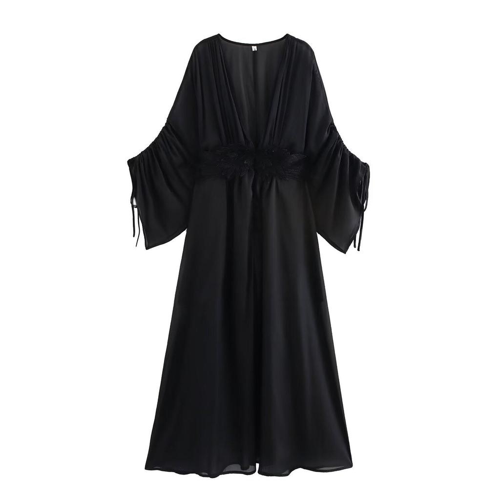 2025 Весна Женское Европейский и Американский Стиль V-образный вырез Длинный рукав Свободное Французское платье