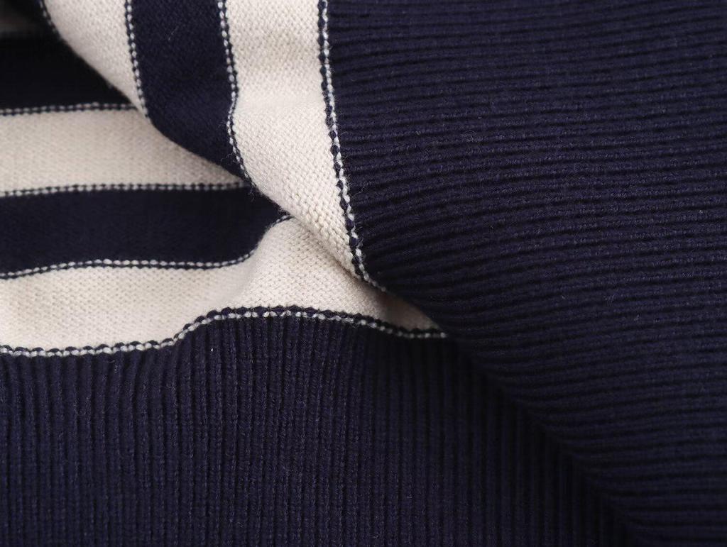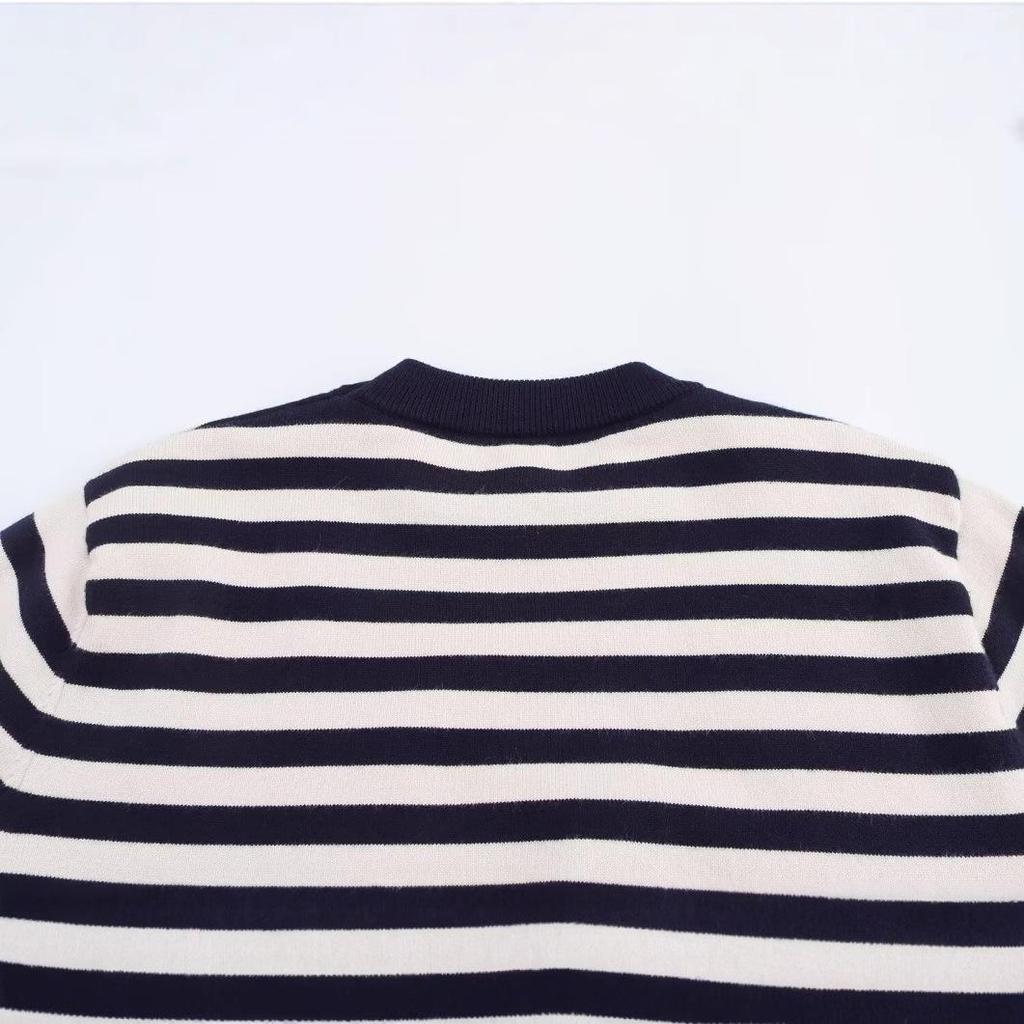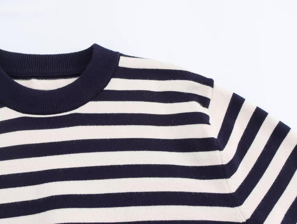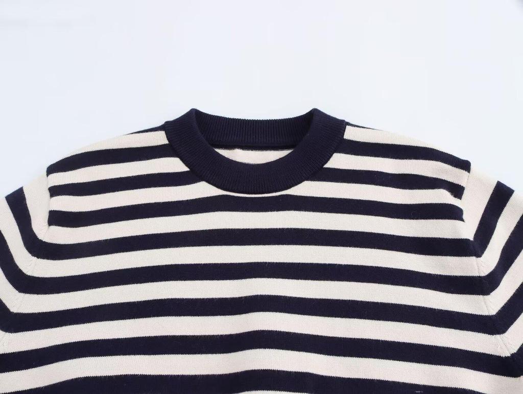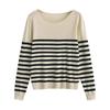 Женский полосатый вязаный пуловер на весну 2025 года - европейско-американский стиль, универсальный круглый вырез, длинные рукава