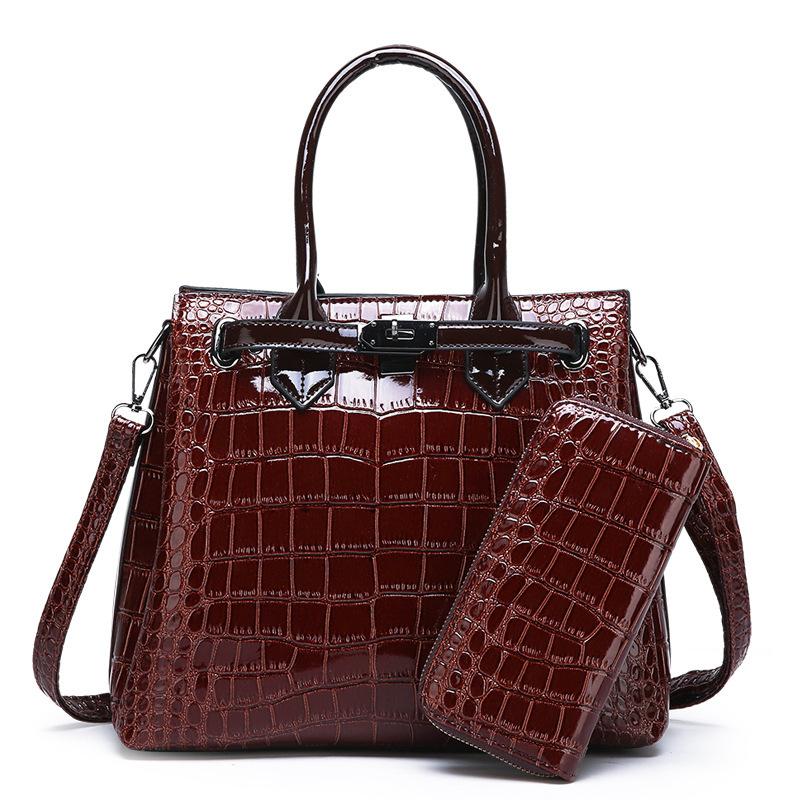 2025 новая мода плечевая лакированная кожа простая мода платиновая сумка мать и дитя женская сумка крокодиловый узор сумочка