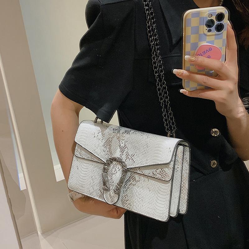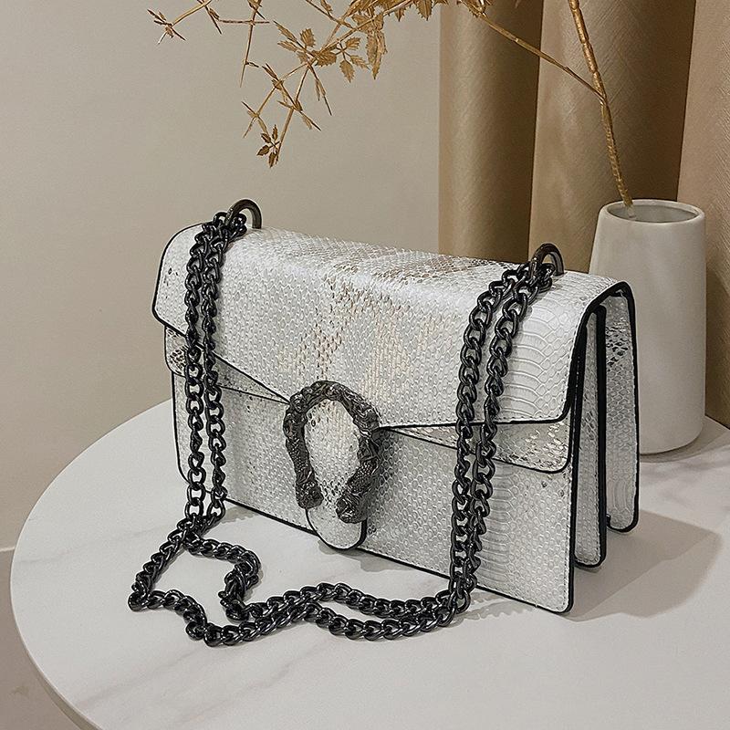 Женская сумка с узором в виде змеи, новая ретро-сумка с черной цепочкой, маленькая квадратная женская сумка, бархатная сумка через плечо с косым ремешком