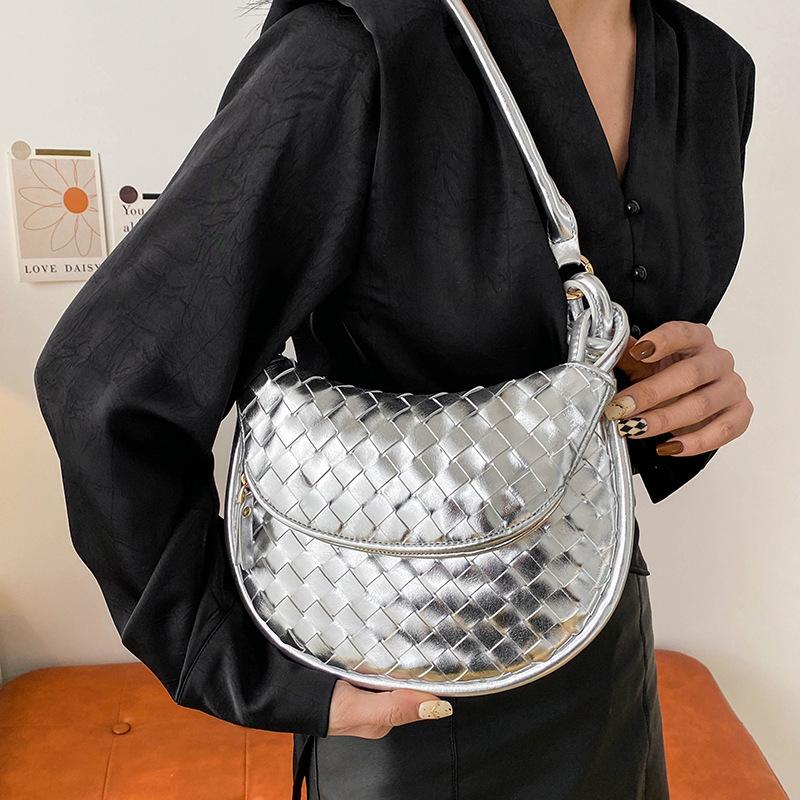 2025 новая плетеная вручную сумка модная легкая роскошная женская сумка простая сумка-полумесяц под мышку сумка на плечо