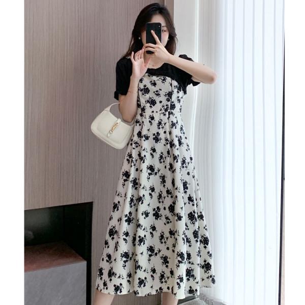 Летнее платье-комбинация 'Колокольчик' с цветочным принтом, с дизайном 'два в одном' и лоскутной вставкой, подчеркивающей талию