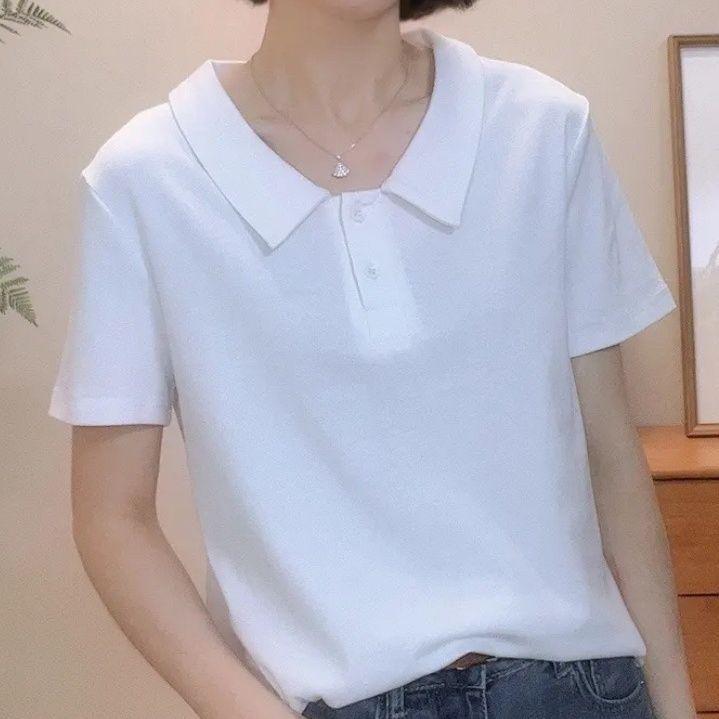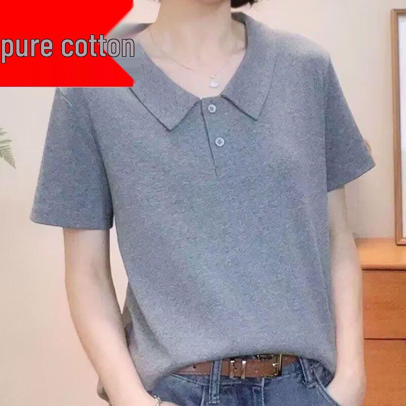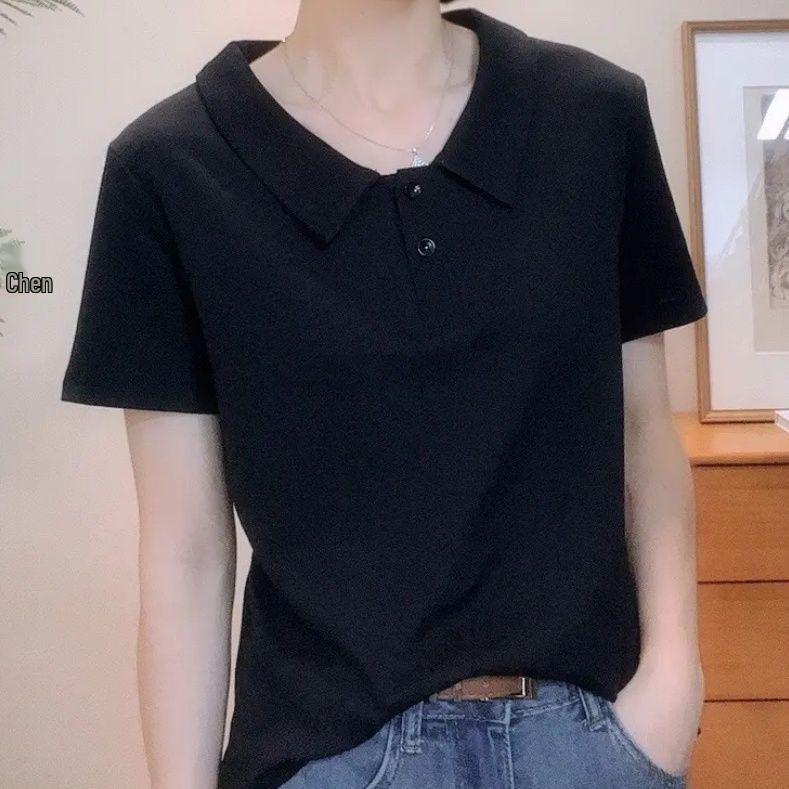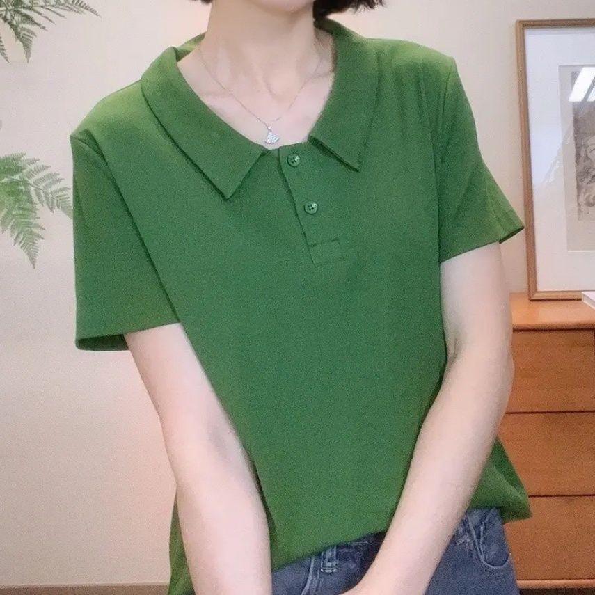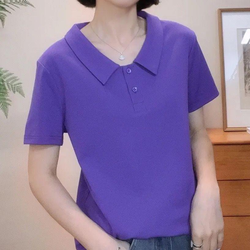 Elevate your summer wardrobe with this stylish and versatile T-shirt, designed to effortlessly enhance your look. Crafted from high-quality cotton material, this slimming base top offers a comfortable and breathable fit, perfect for warm weather. Featuring a chic turn-down collar and trendy short sleeves, it seamlessly blends fashion with function. Its solid color design makes it easy to mix and match with various outfits, providing a youthful and modern edge to your everyday style. Ideal for any occasion, this age-reducing tee is a must-have staple for the fashion-forward woman.