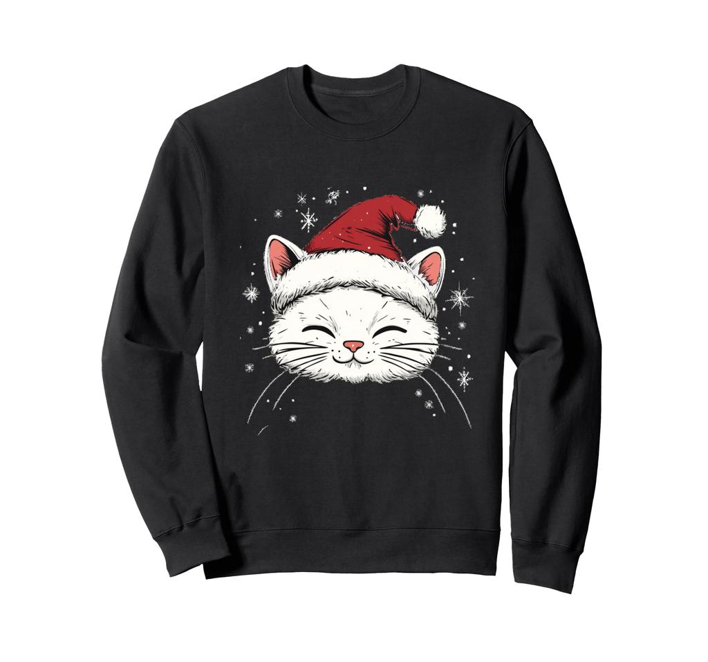 Рождественский кот в шапке Санты Женский Свитшот С Рождеством