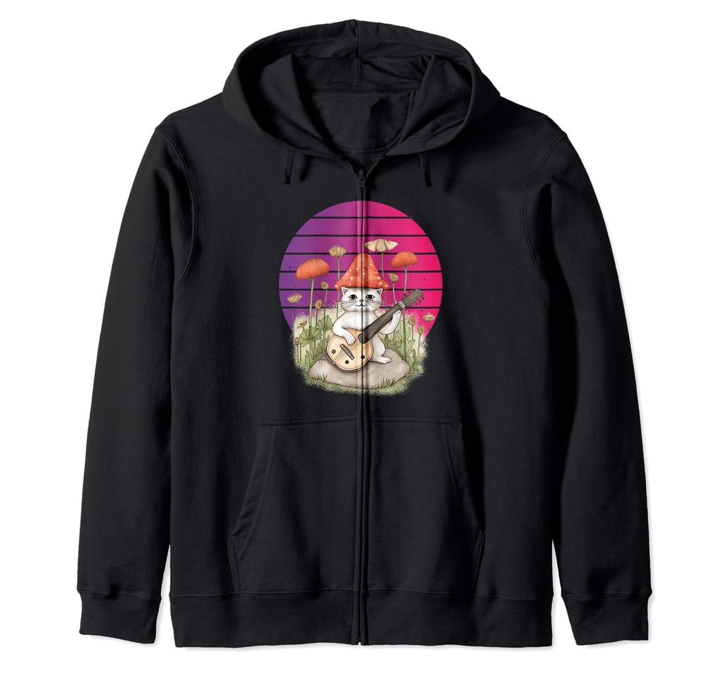 Причудливый Милый Кот Шляпа Гриб Гитара Любитель Природы Фэнтези Толстовка на Молнии