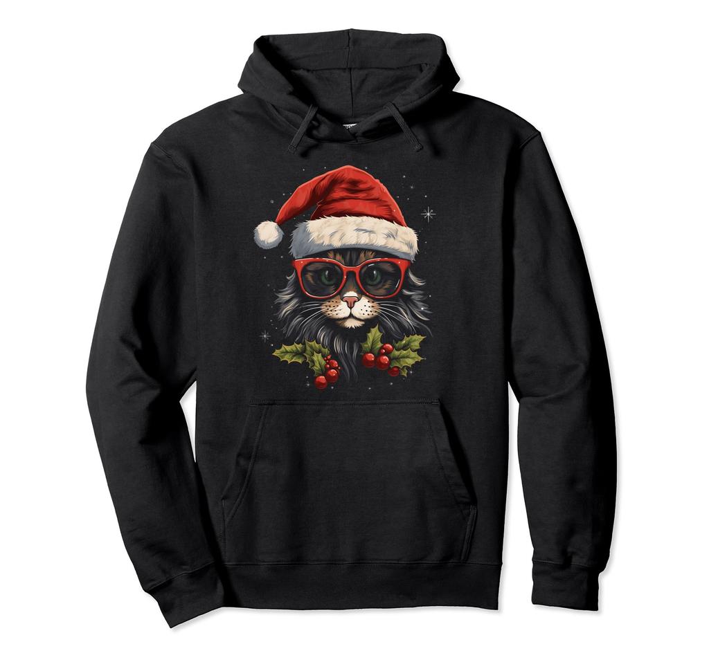 Рождественский кот Шапка Санты Очки Рождественская праздничная одежда Праздничное худи