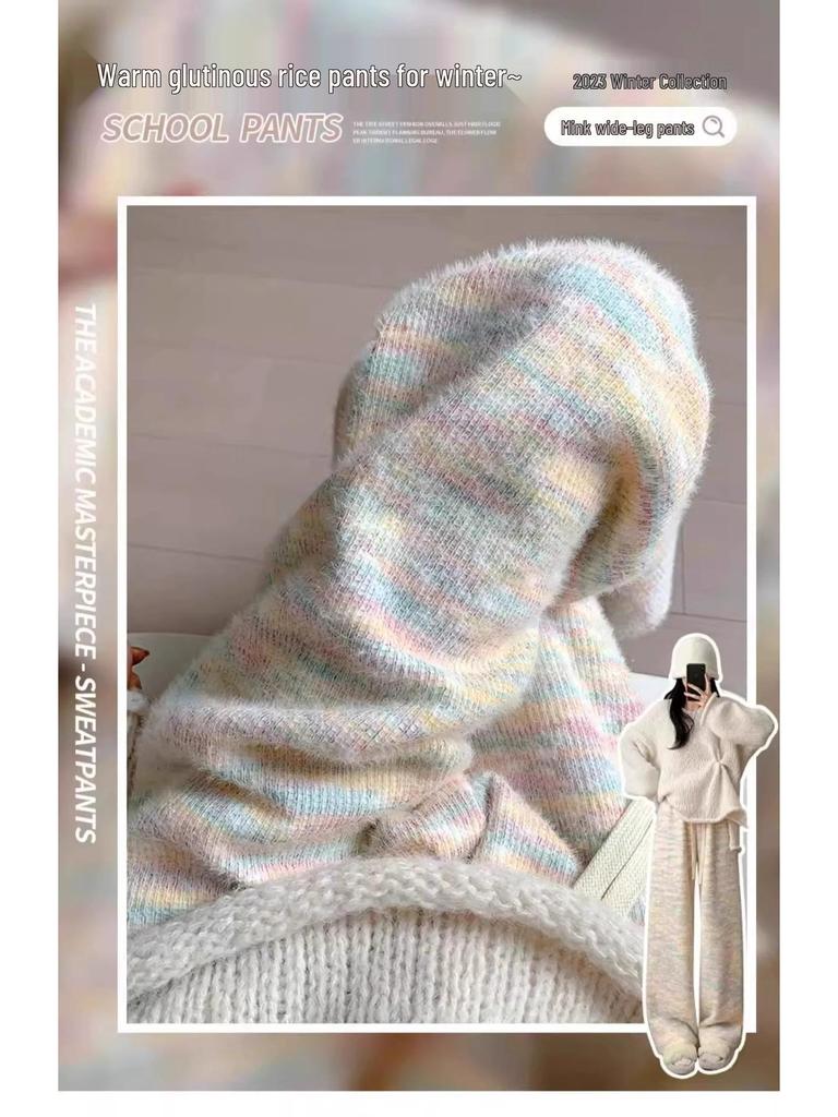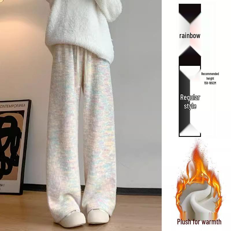 Experience comfort and style with these chic autumn/winter casual pants designed for women. Featuring a high waist and wide leg design, these pants are perfect for a relaxed yet fashionable look. Lined with fleece for added warmth, they are ideal for cooler weather. Crafted from a spandex material, they offer both flexibility and a flattering fit. Embrace a sportive style with these versatile straight leg pants, perfect for any casual outing or lounging at home.
