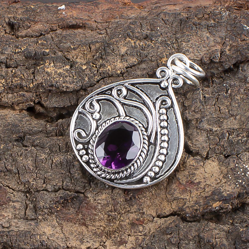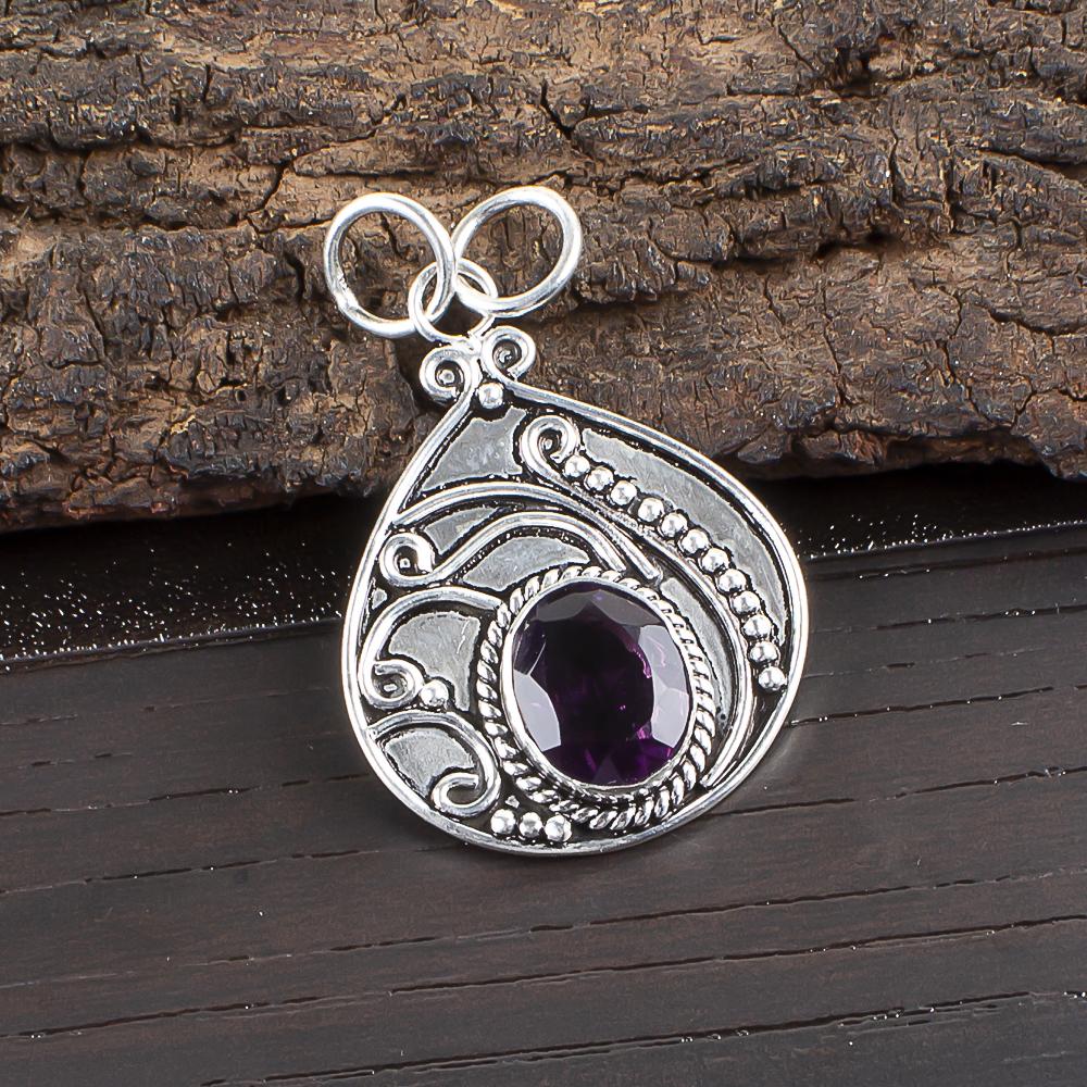 Подвеска с африканским аметистом, серебро 935 пробы, ручной работы, великолепная серебряная подвеска для подарка на День благодарения