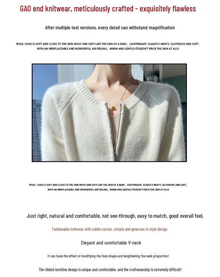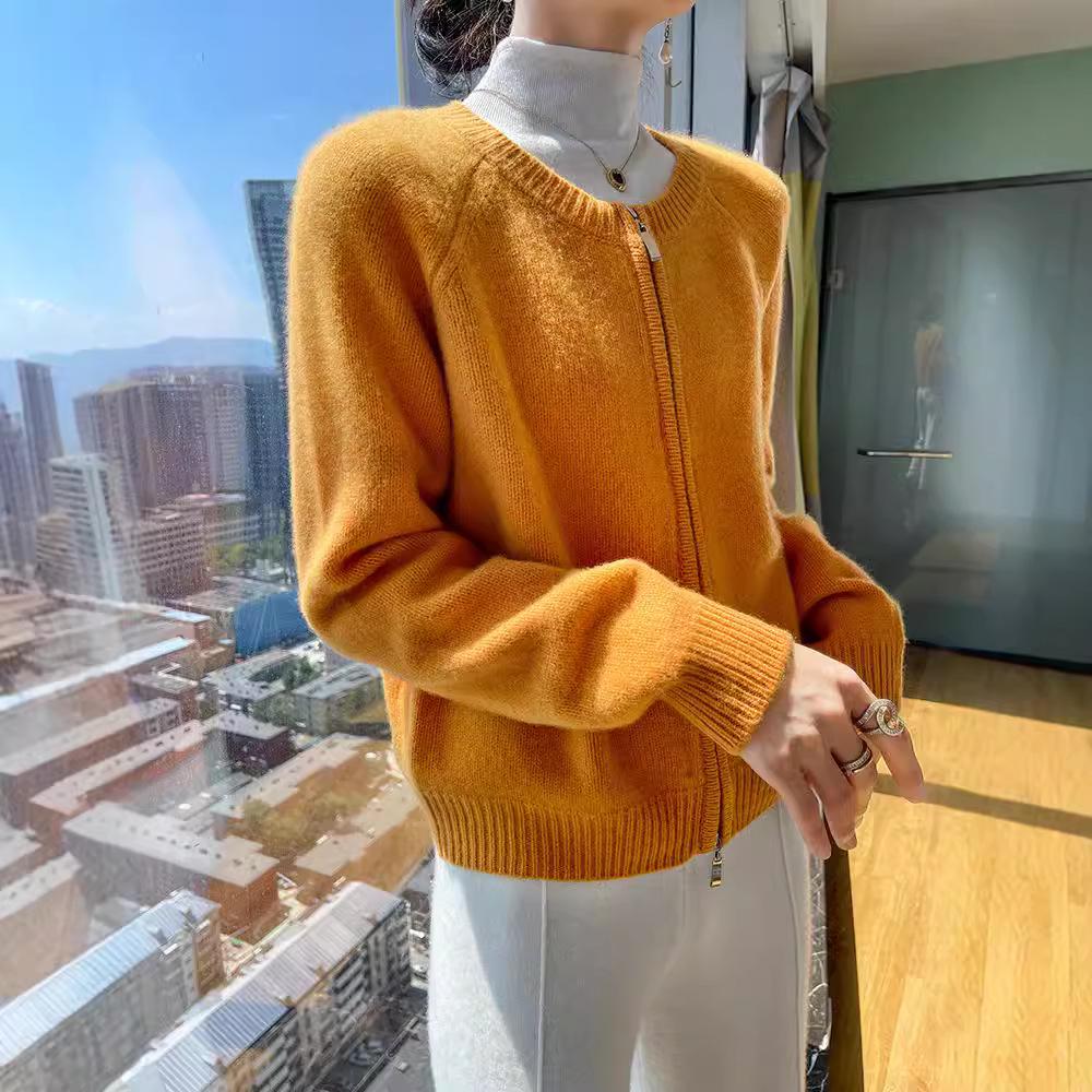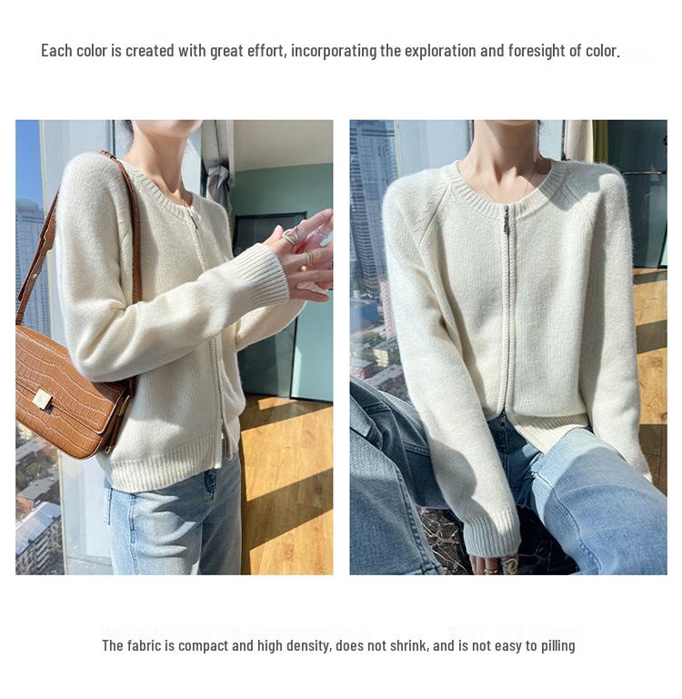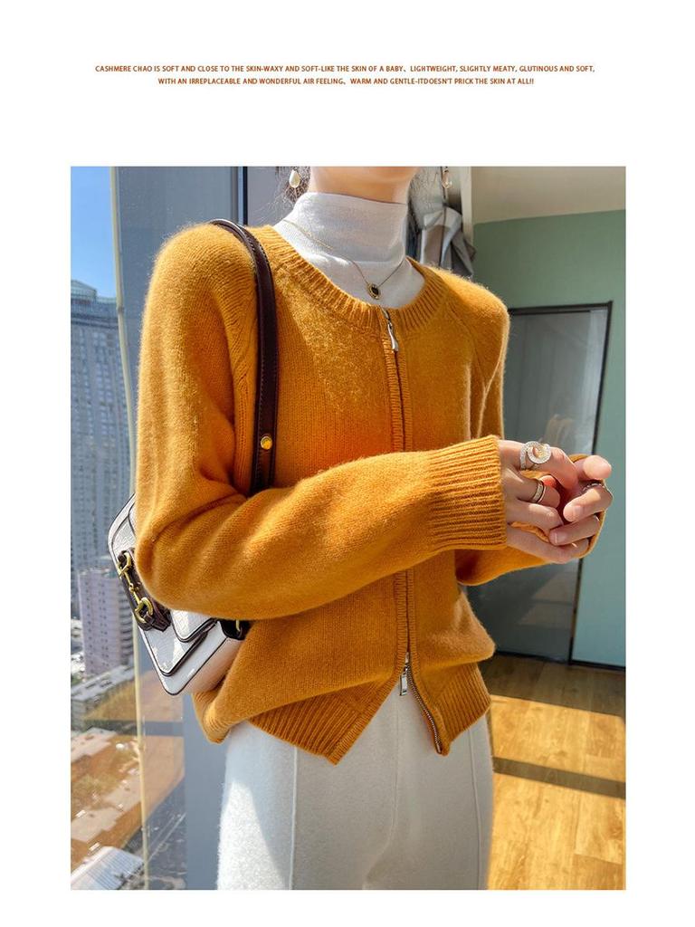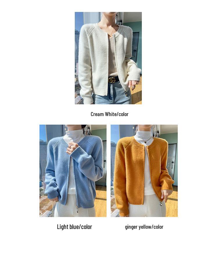 Вязаный кардиган в корейском стиле ретро с круглым вырезом для женщин - Маленький осенний свитер на молнии с высокой талией
