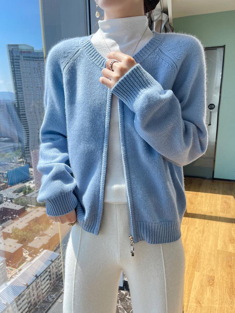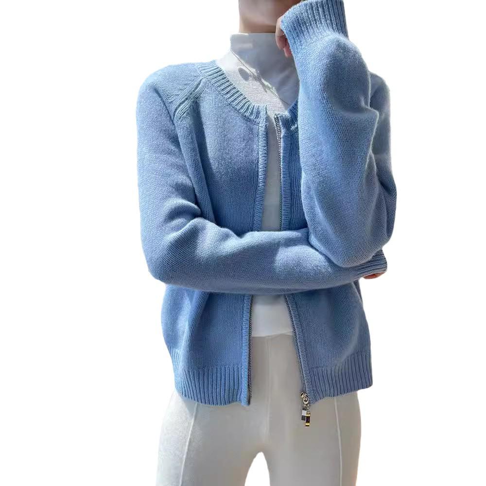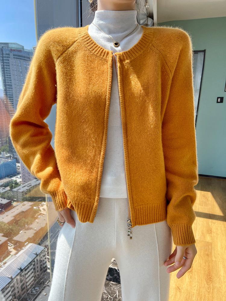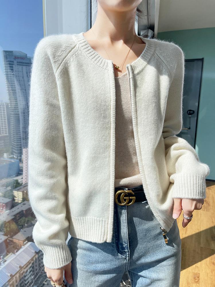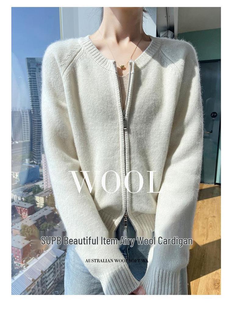 Вязаный кардиган в корейском стиле ретро с круглым вырезом для женщин - Маленький осенний свитер на молнии с высокой талией