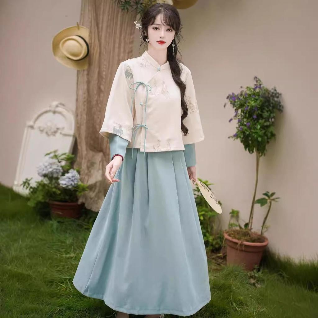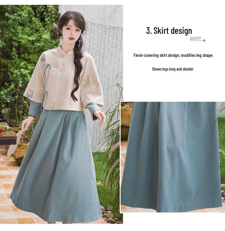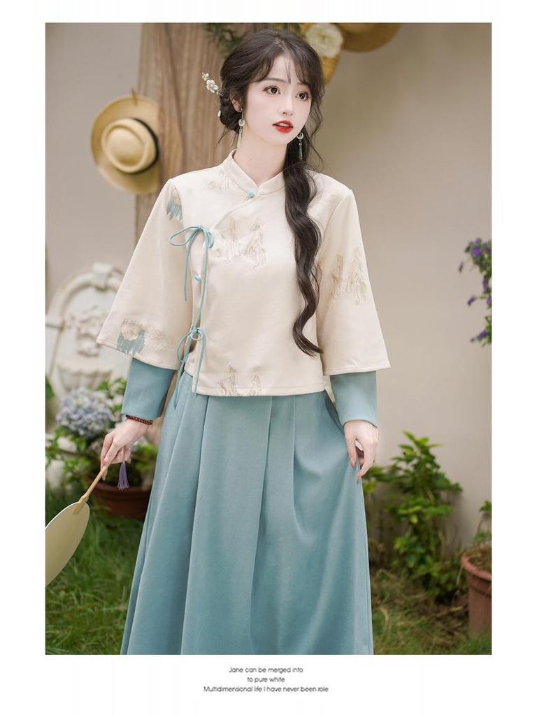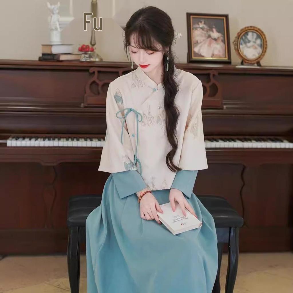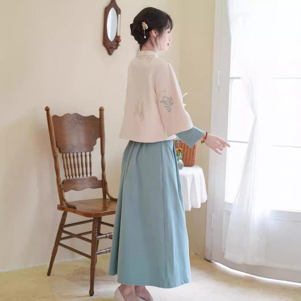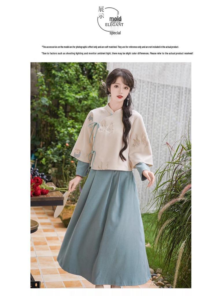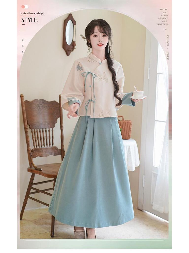 Женский ретро китайский вышитый костюм Тан с воротником-стойкой, ципао, дзен чайный набор на осень/зиму.