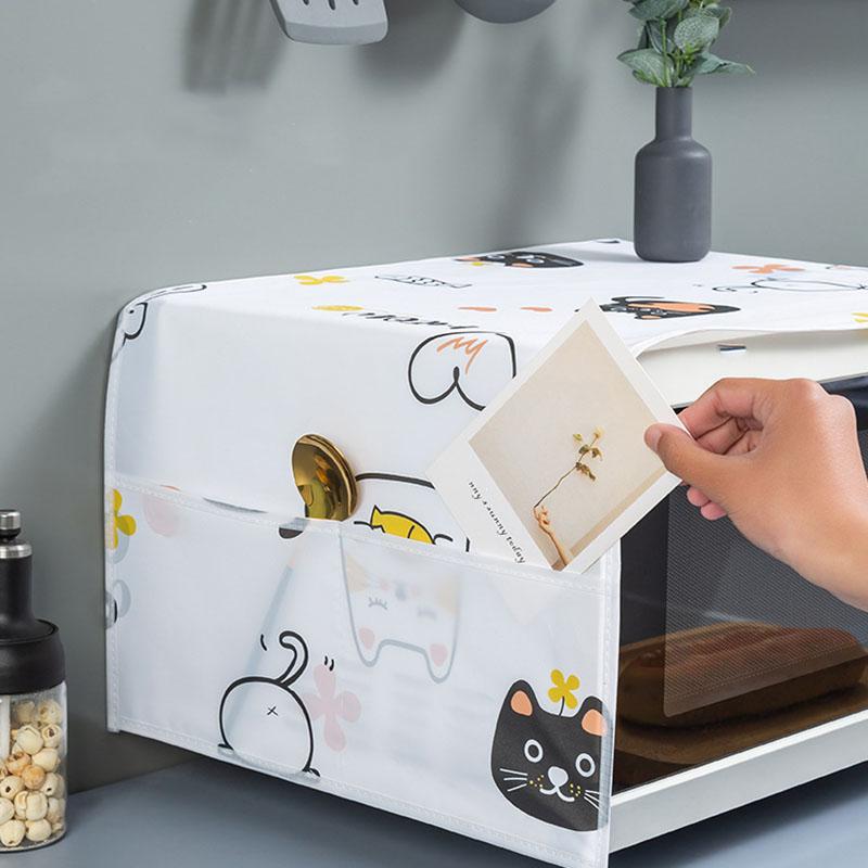 Пылезащитный чехол для микроволновой печи с карманом, многоразовый чехол для микроволновой печи с мультяшным дизайном для защиты от пыли и испарений на кухне и дома