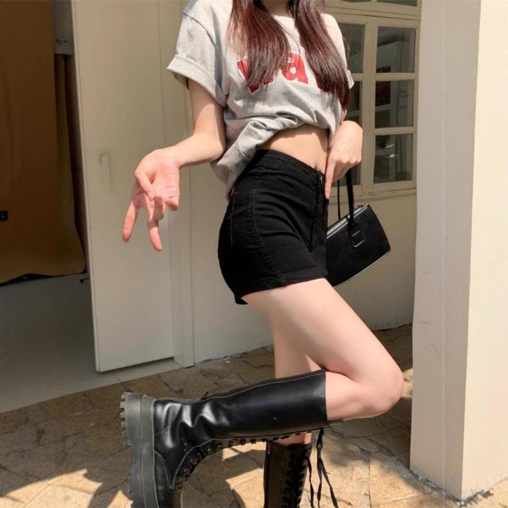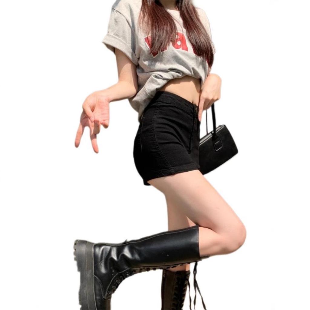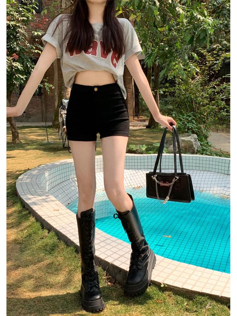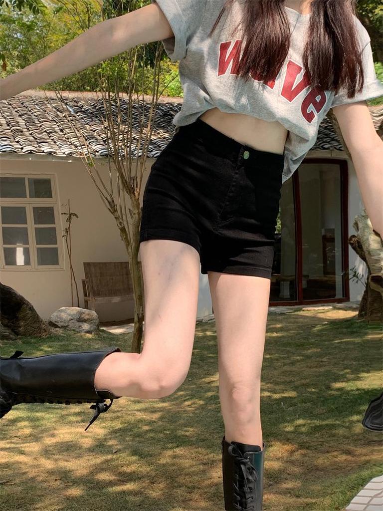 Женские джинсовые шорты А-силуэта с высокой посадкой, черные, 2025: Летний Стройнящий Стиль