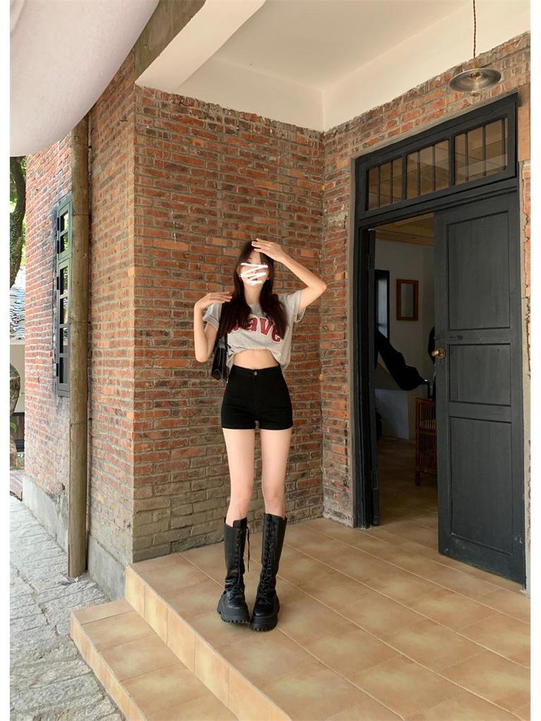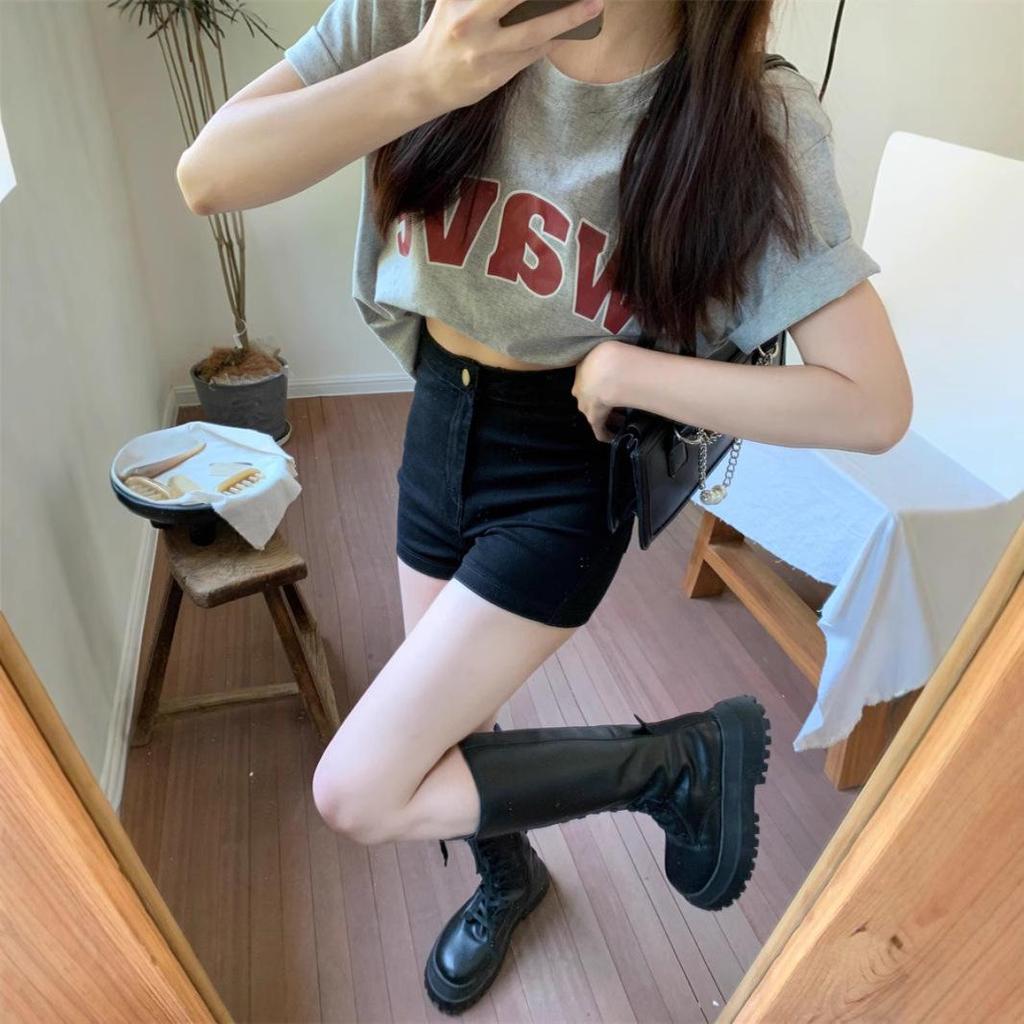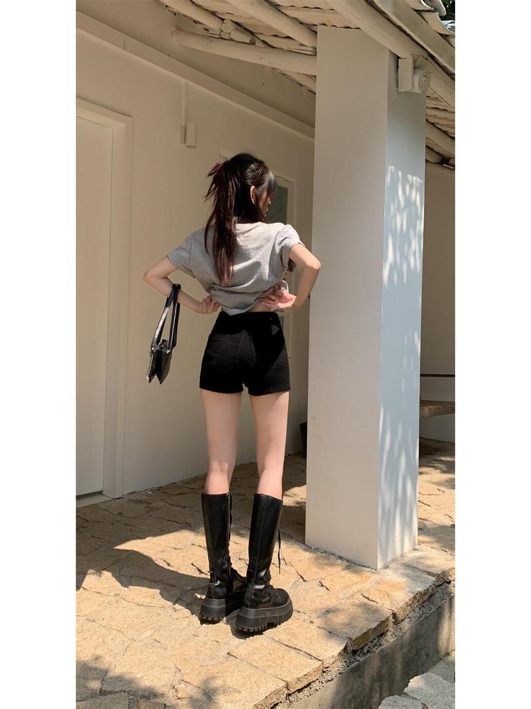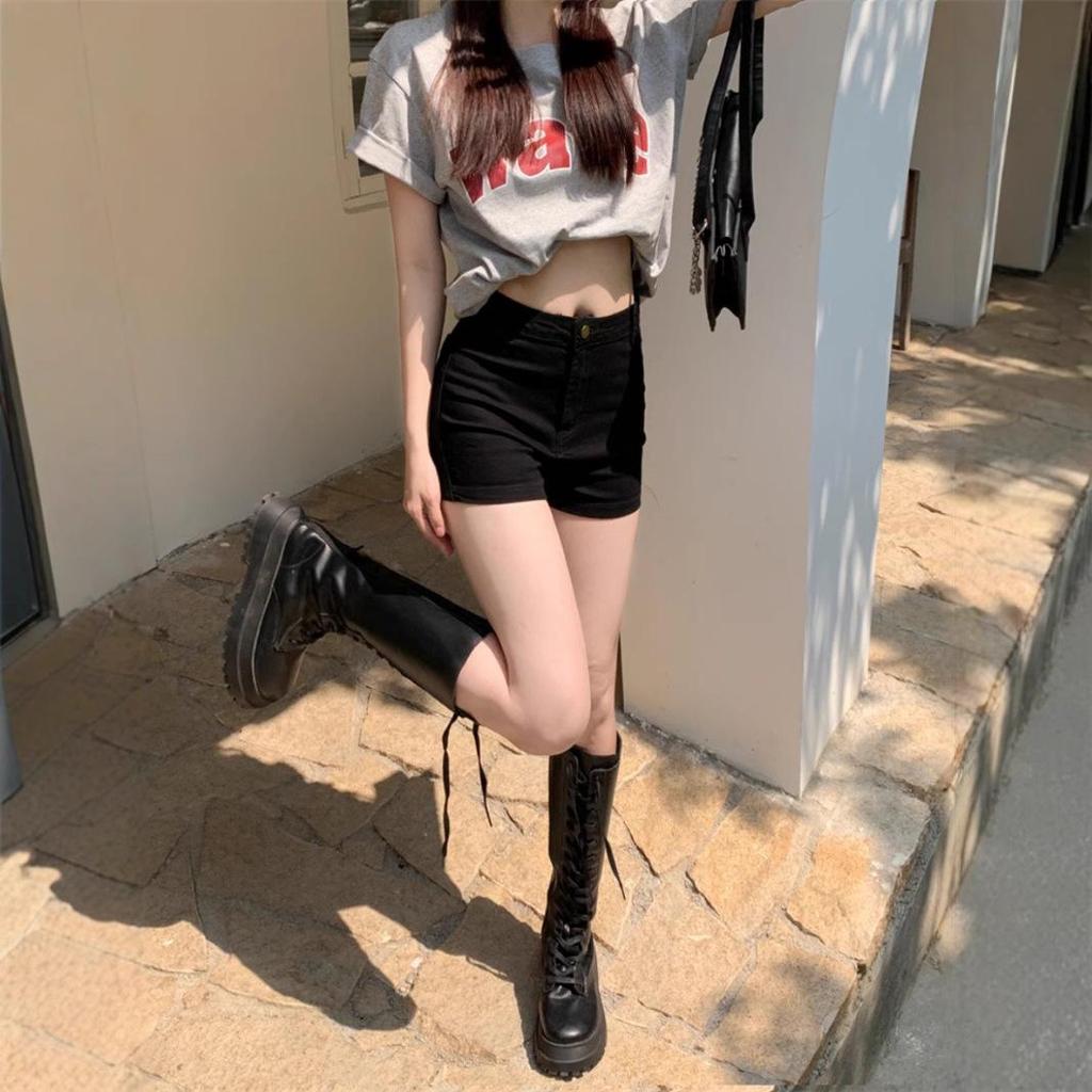 Женские джинсовые шорты А-силуэта с высокой посадкой, черные, 2025: Летний Стройнящий Стиль