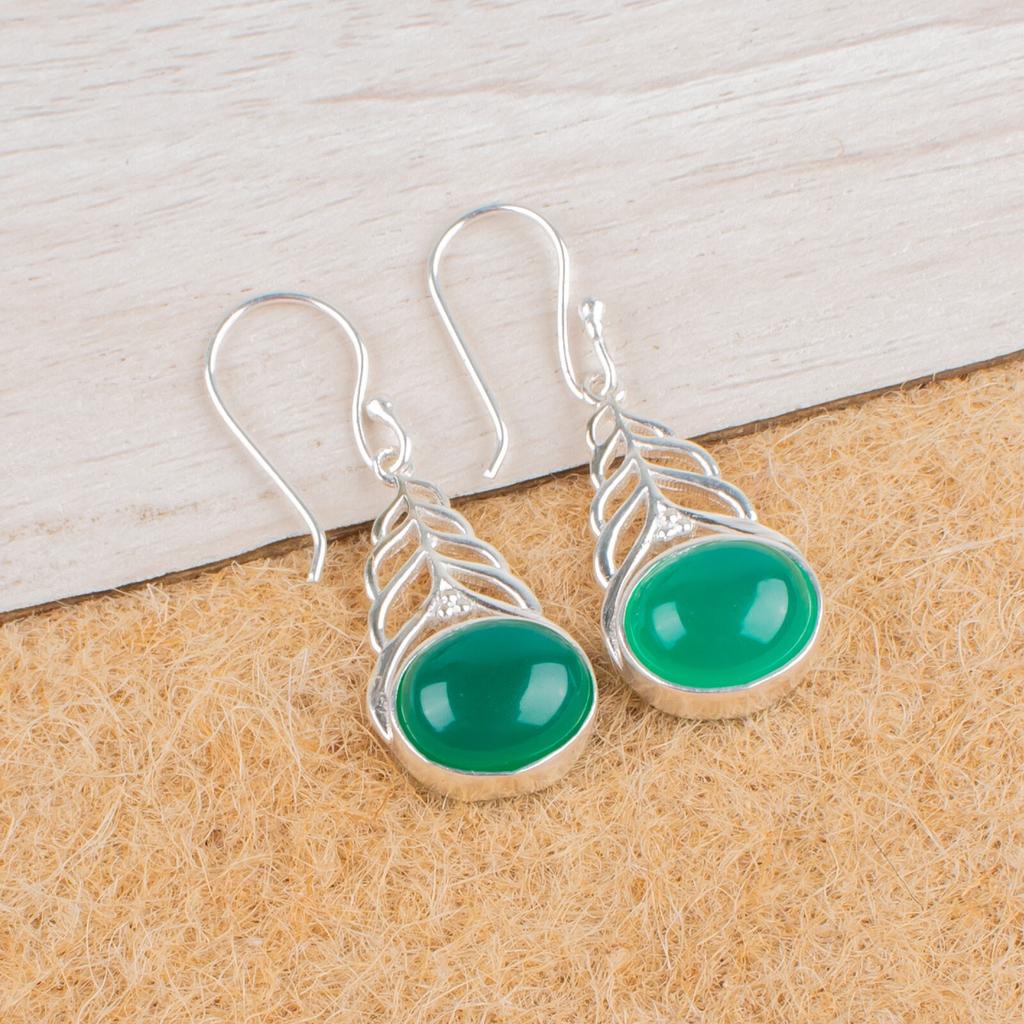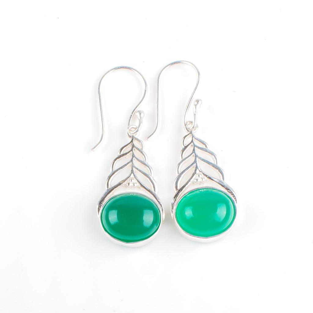 Зеленый Оникс Кабошон Драгоценный камень 925 Стерлинговое Серебро Ювелирные изделия Женские Серьги 1.64" Для подарка CE-1-32
