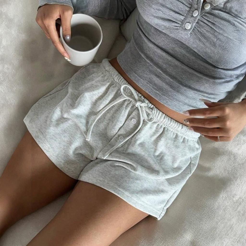 Женские летние свободные удобные повседневные модные однотонные вязаные шорты на пуговицах с поясом