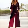 Женский свободный повседневный комбинезон с V-образным вырезом и принтом, облегающий комбинезон с широкими штанинами, комбинезон с широкими штанинами